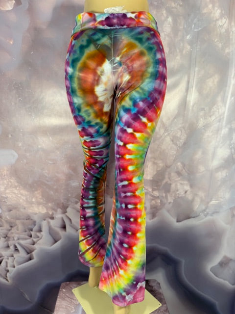 Royal Apparel branded USA made yoga pants with fold over waist. Tiedyed by Brittany of Tyrannosaurus Dyes of Colorado. We LOVE Brittany's tiedye!!! We all go bananas every time we get a box from her in...JUST WOW!