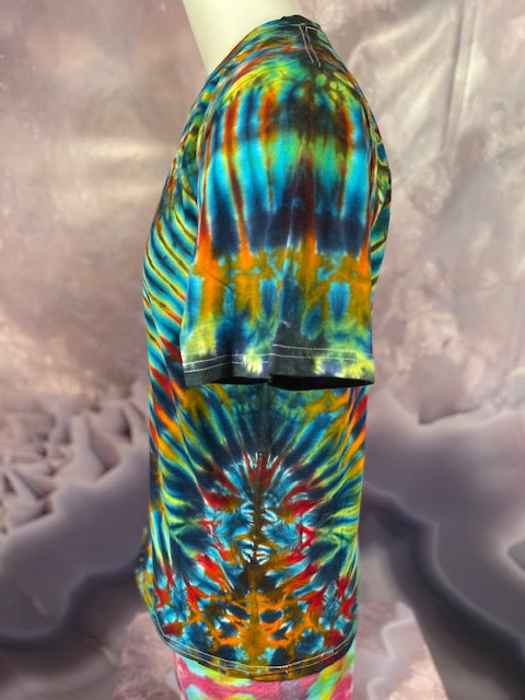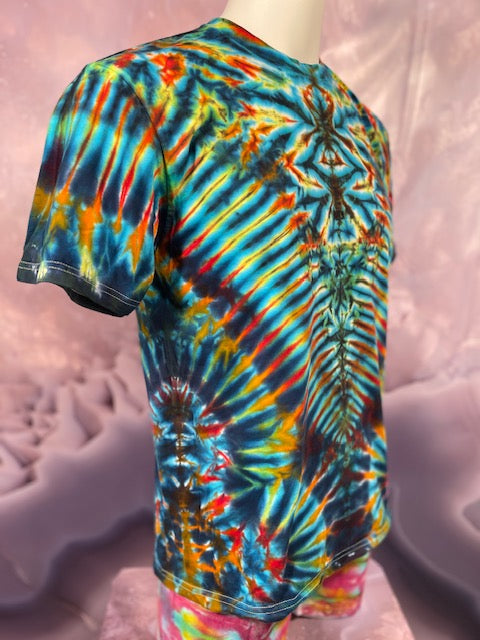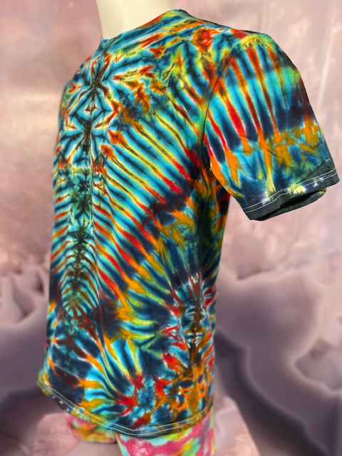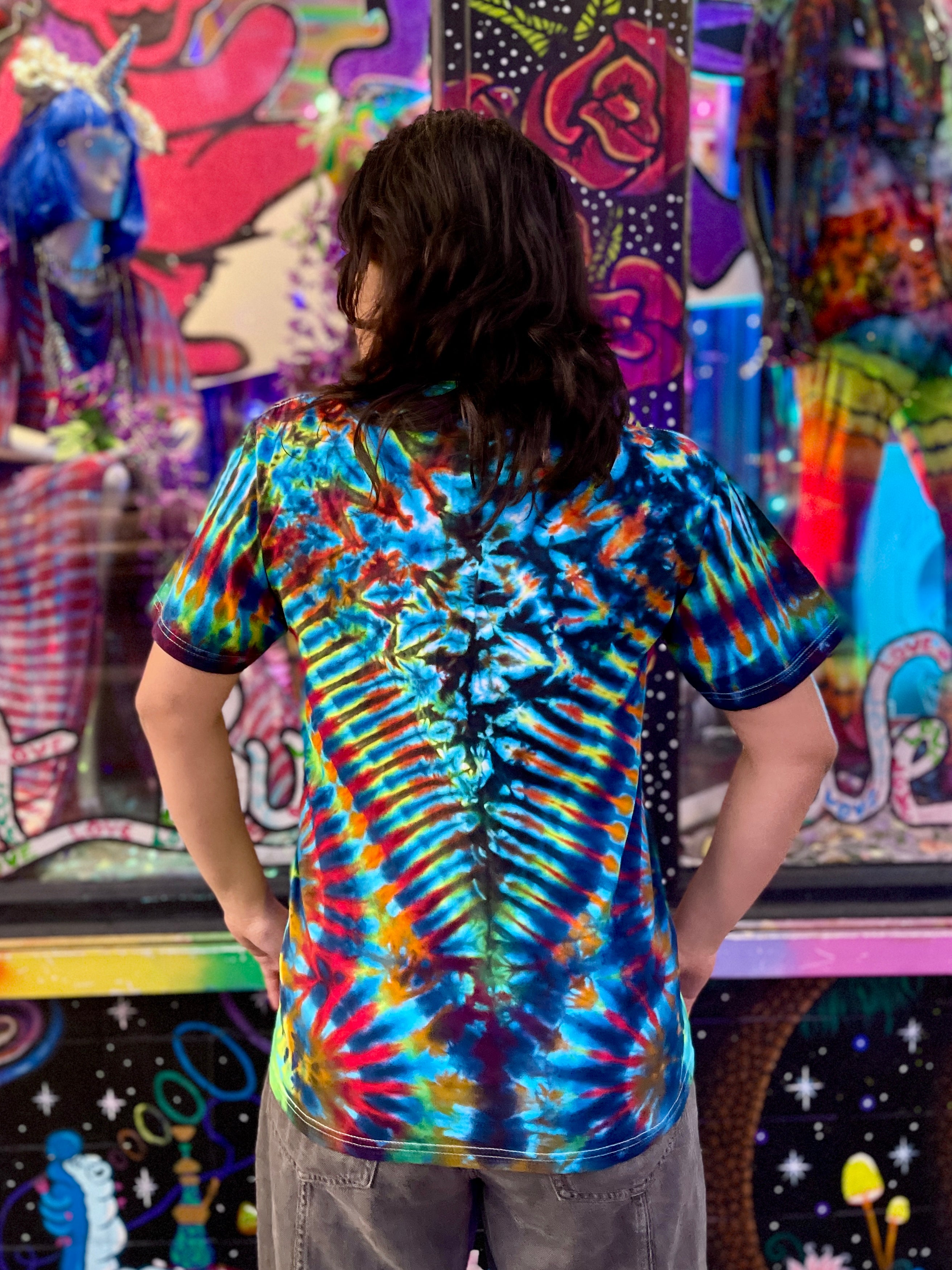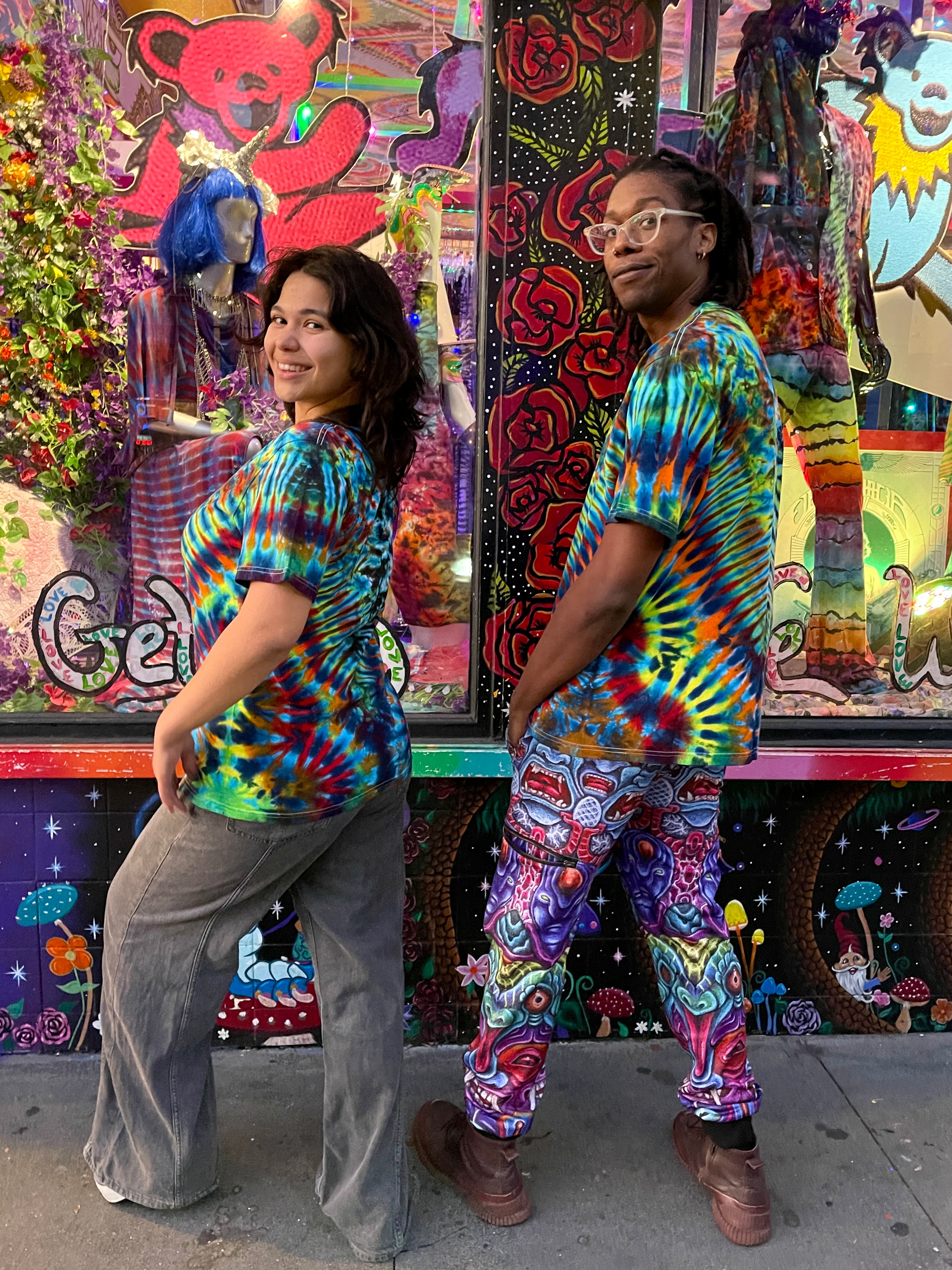 Tiedyed by the one and only Josh Wojcik from Eugene, Oregon, these shirts are ON FIRE. Josh is one of our most talented tiedye artists and just one awesome guy in general! Put some Eugene, Oregon sunshine in your wardrobe with Josh Wojcik's vibrant, handmade t-shirts. Add a bold and fun vibe to your look and support a talented artist, all in one go!