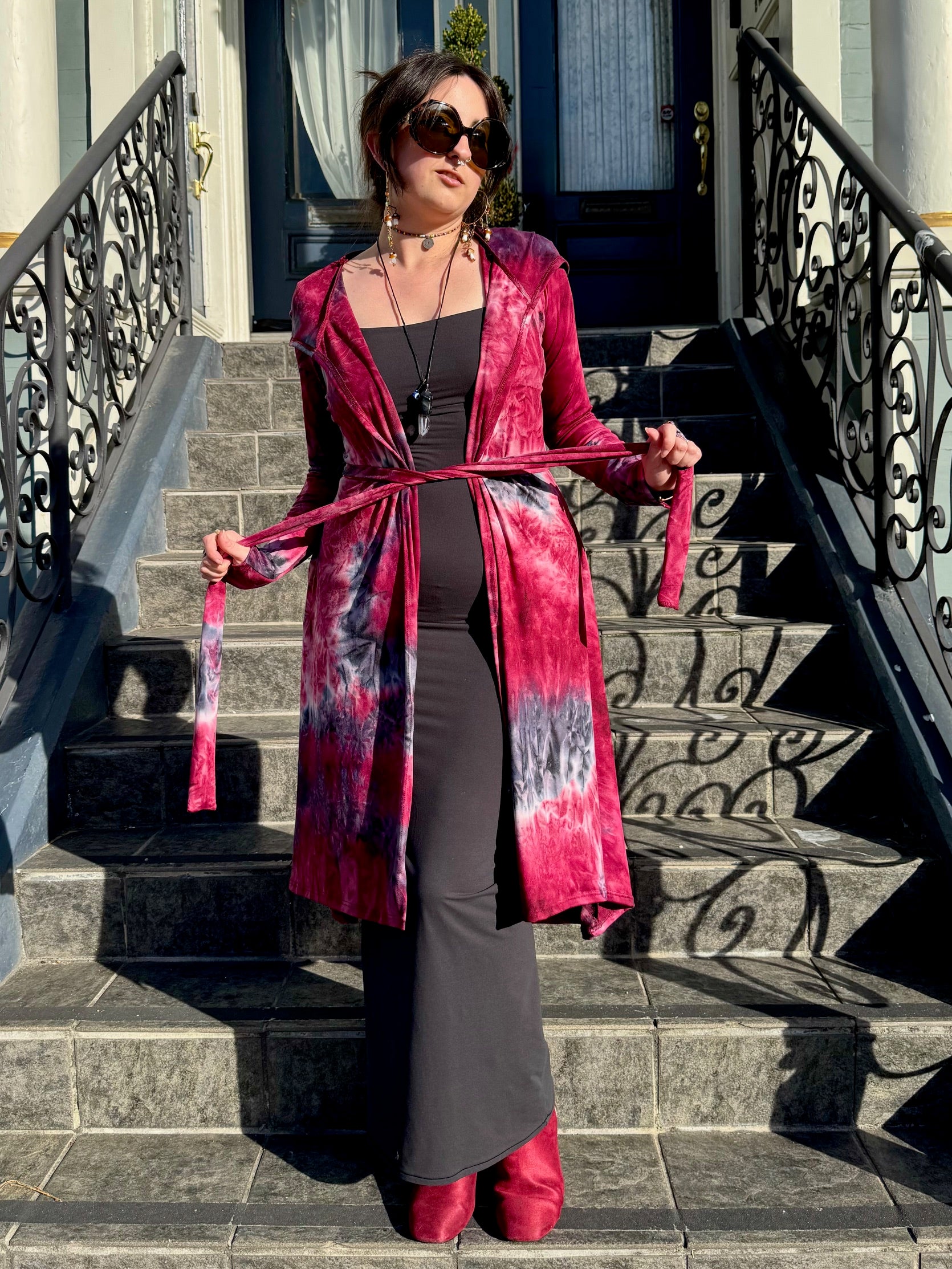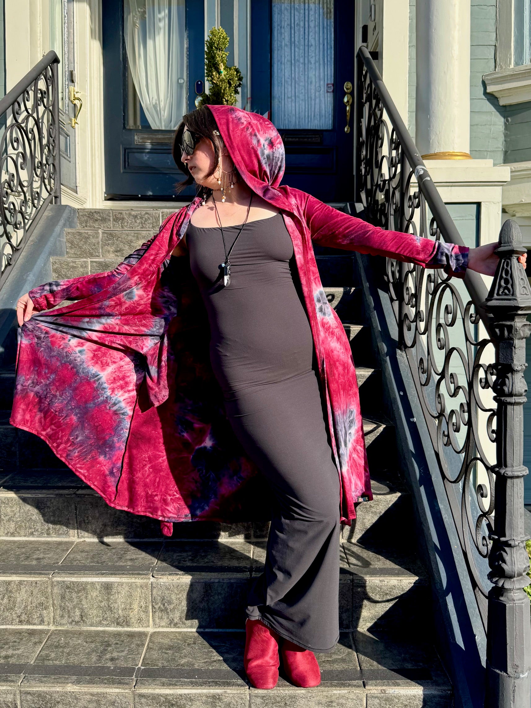 Matching pants are at https://loveonhaightsf.com/products/lohd-printed-tiedye-rocker-bell-bottoms-red-burgundy?variant=50602128834873