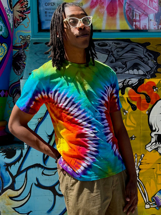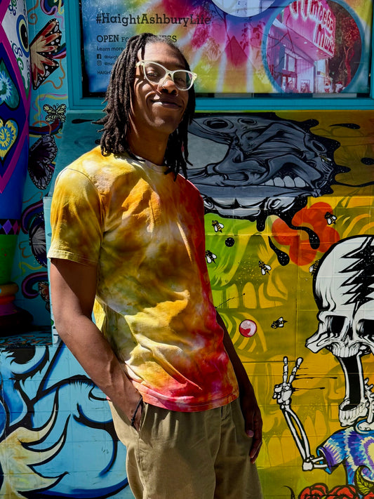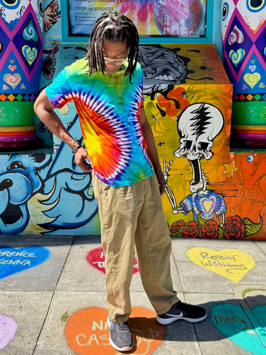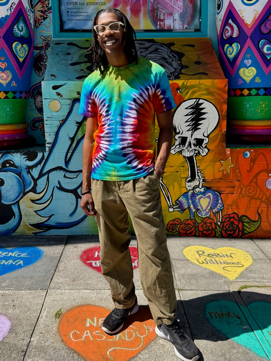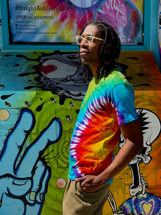 Kosmic Blues Electric Emporium, a unique shop covered in an explosion of color with an extraordinary collection of tie-dye designs, artisanal jewelry and more.