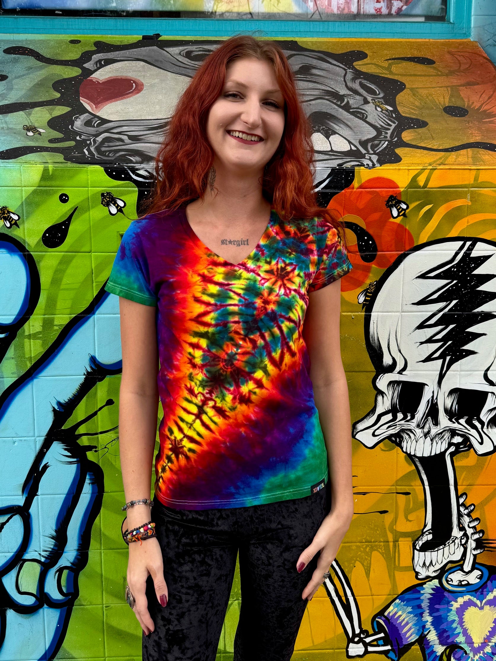 I mean we Love Josh Shirts!! and the ladies need a shirt...so we teamed up with the one and only Josh Wojcik, aka Barefoot Laser Tie dye to bring you these awesome V Necks dyed in Eugene Oregon.