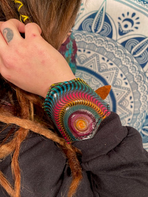 Lotus Leather Wrist Cuff w/ Small Pocket #2