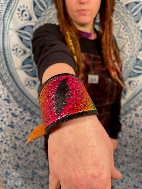 Lotus Leather Wrist Cuff w/ Small Pocket #9