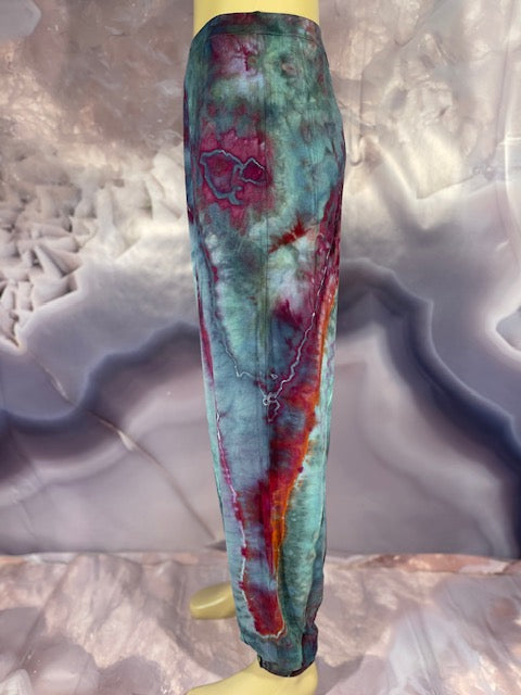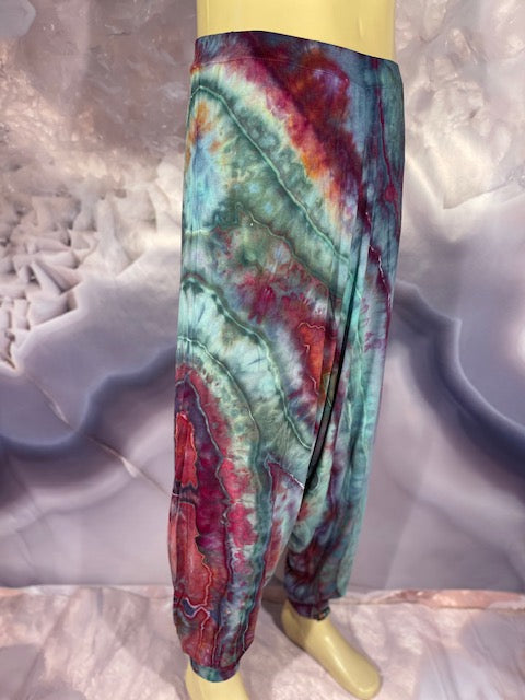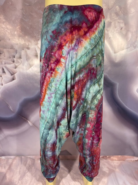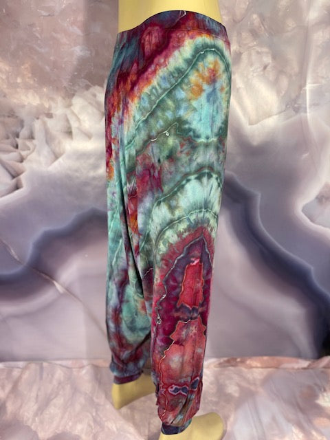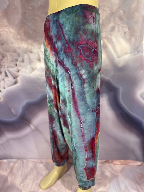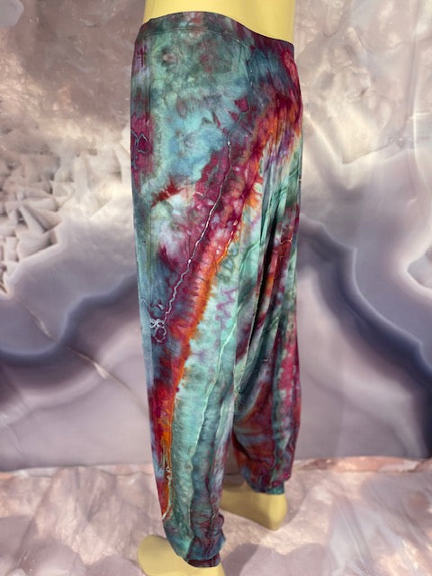 Cut & Sewn in California out of a Super Soft Rayon Cotton these magical pants are Ice Dyed by Mary Beth Osborn of MarybgoRound Dyes of Colorado.
