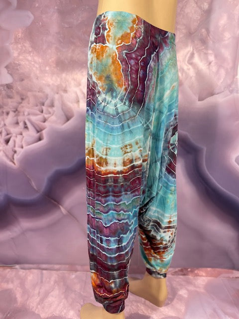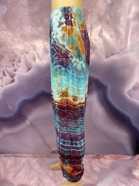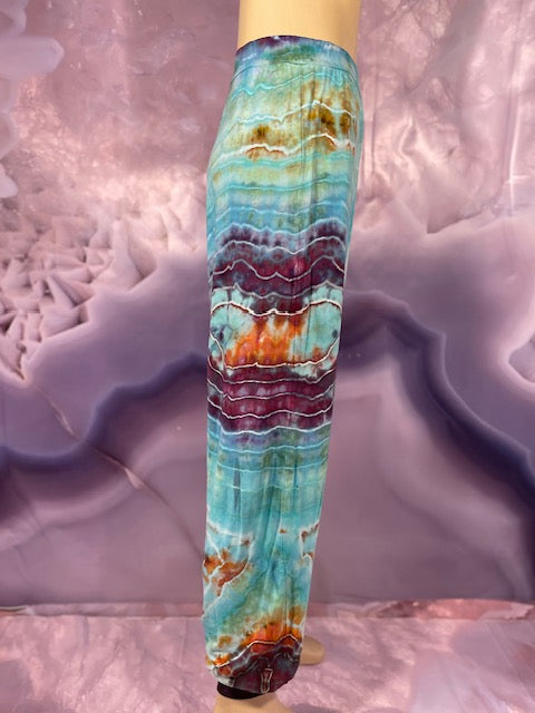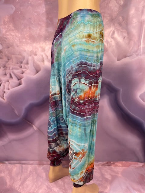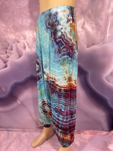 Cut & Sewn in California out of a Super Soft Rayon Cotton these magical pants are Ice Dyed by Mary Beth Osborn of MarybgoRound Dyes of Colorado.