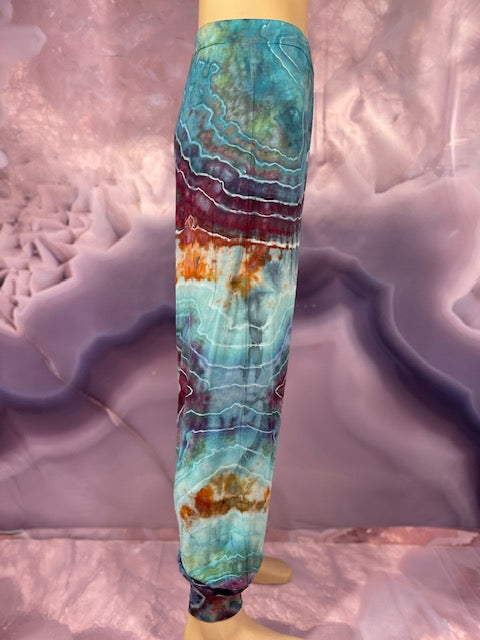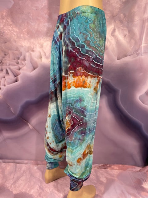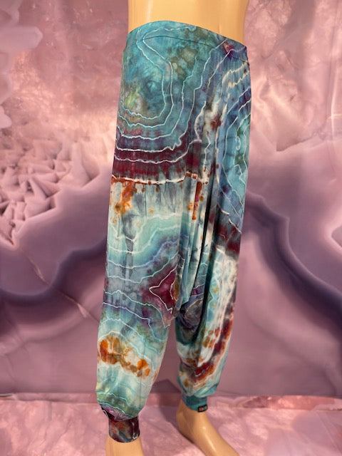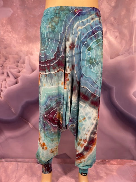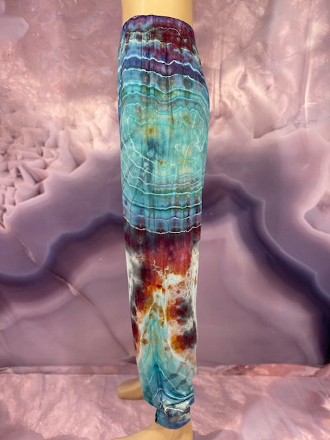 Cut & Sewn in California out of a Super Soft Rayon Cotton these magical pants are Ice Dyed by Mary Beth Osborn of MarybgoRound Dyes of Colorado.