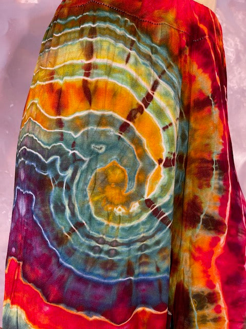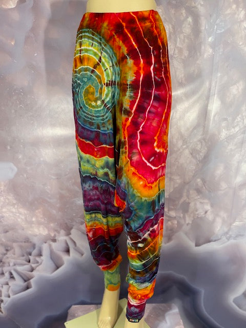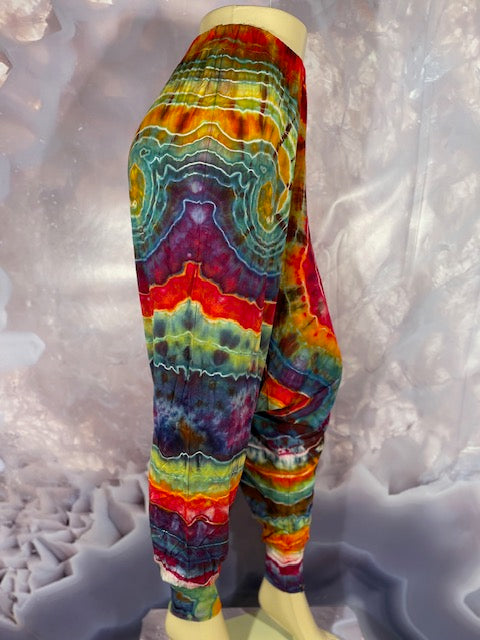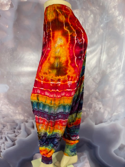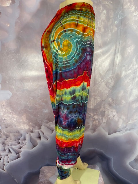 Cut & Sewn in California out of a Super Soft Rayon Cotton these magical pants are Ice Dyed by Mary Beth Osborn of MarybgoRound Dyes of Colorado.