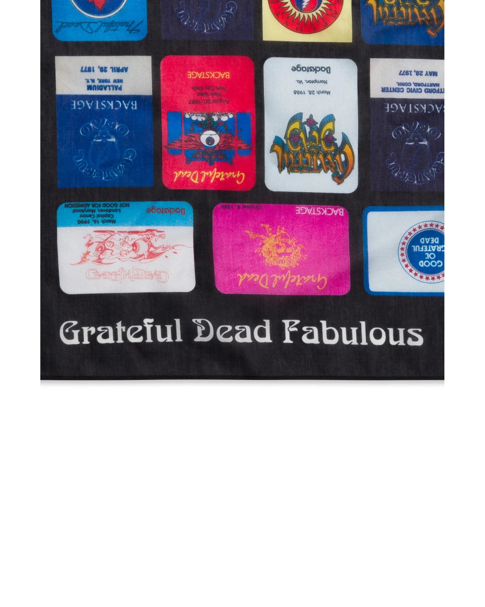 This officially licensed Grateful Dead Backstage Pass print scarf is perfect for the sophisticated Dead Head with an eye for quality and exquisite taste. Featuring an all-over Backstage Pass print, this unique wearable piece of art utilizes vintage passes from the archive of long-time Grateful Dead photographer, Jay Blakesberg.