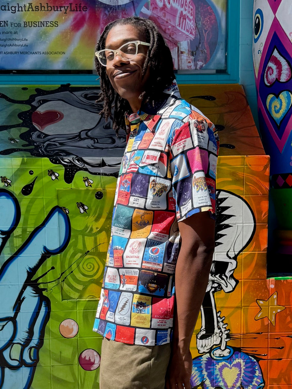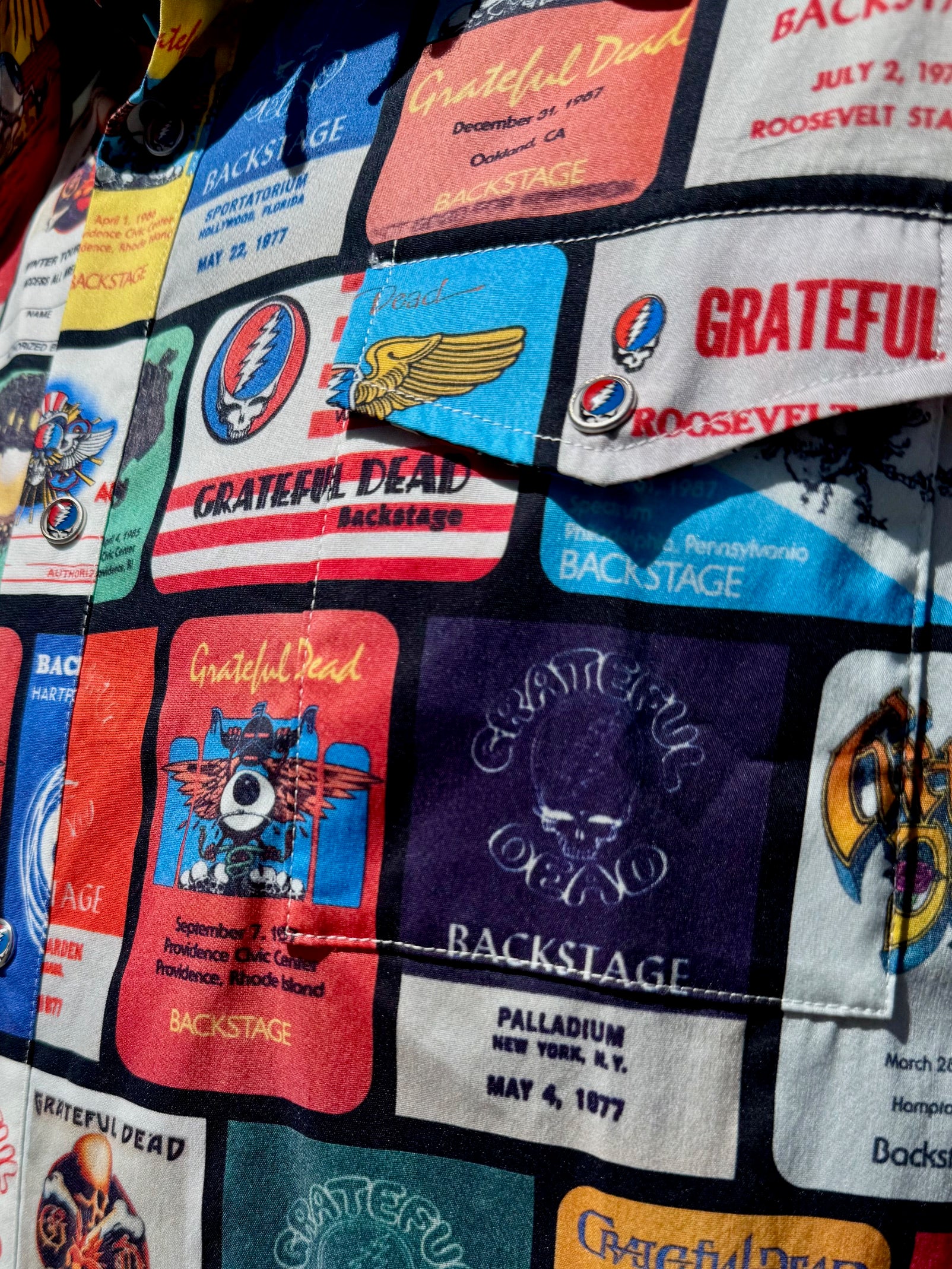 This officially licensed Grateful Dead Backstage Pass print shirt is perfect for the sophisticated Dead Head with an appreciation of quality and eye for exquisite taste. Featuring an all-over Backstage Pass print, this unique wearable piece of art utilizes vintage passes from the archive of long-time Grateful Dead photographer, Jay Blakesberg.