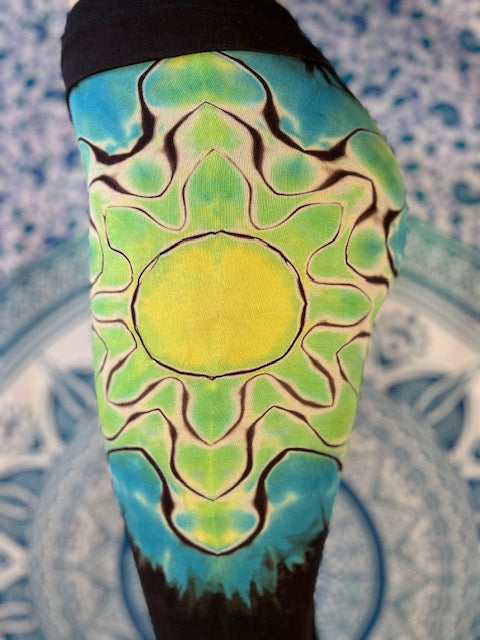 These magical American Made Royal Apparel yoga pants with fold over waist started off black, then Michael Martelli during his stay in Florida made these SUPER magical and added some color...for rainbow richness like never before!