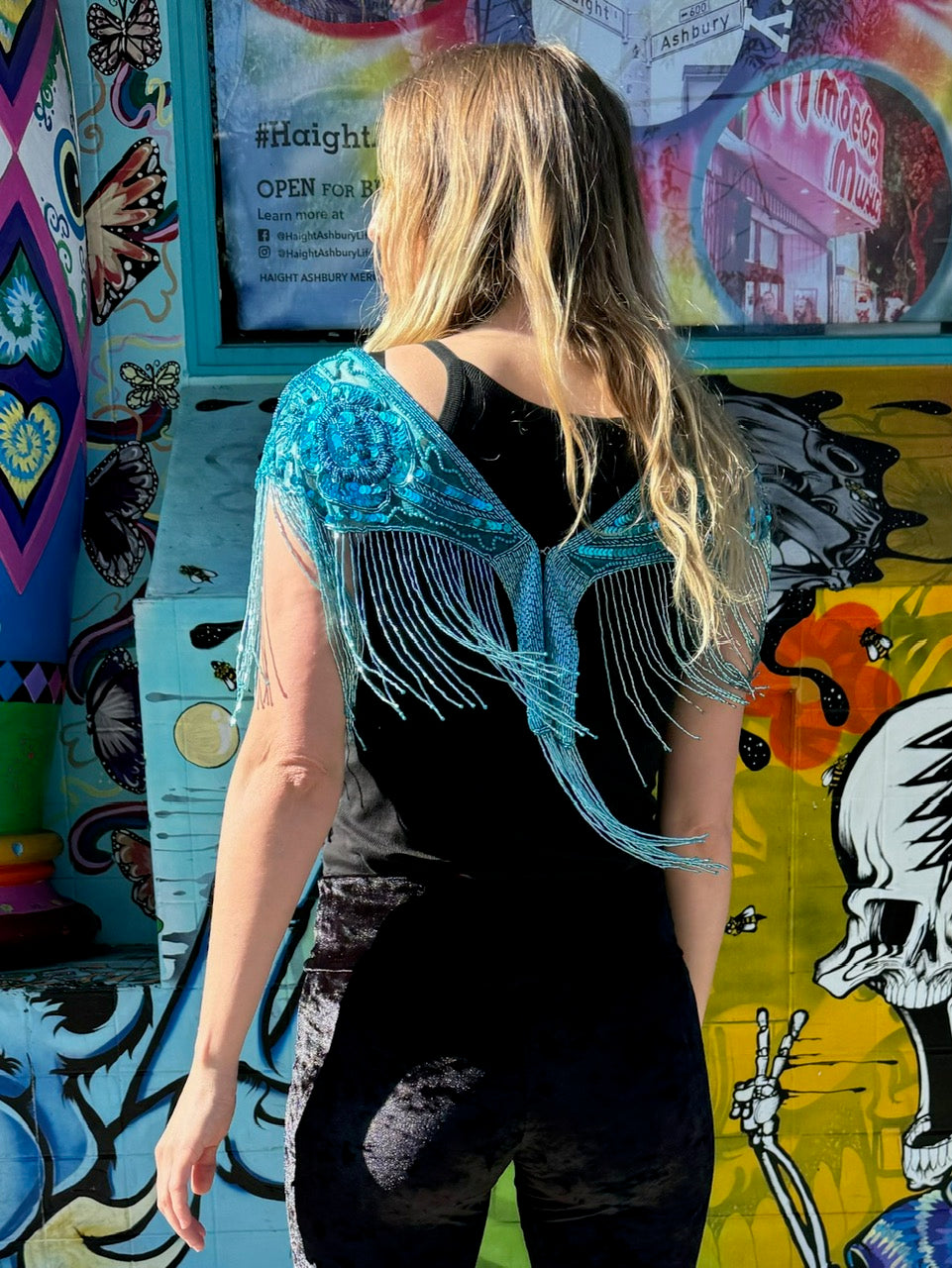 Immerse yourself in the elegance of this Beaded Shawl with Roses. This wrap is a classy addition to any accessory collection. Ideal for a variety of occasions - be it rave, festivals, Halloween, Renaissance or parties. This isn't just an accessory, it's a statement of style and sophistication.
