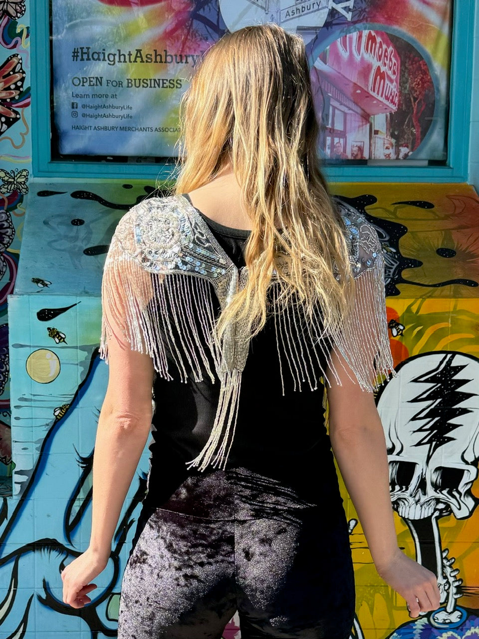 Immerse yourself in the elegance of this Beaded Shawl with Roses. This wrap is a classy addition to any accessory collection. Ideal for a variety of occasions - be it rave, festivals, Halloween, Renaissance or parties. This isn't just an accessory, it's a statement of style and sophistication.