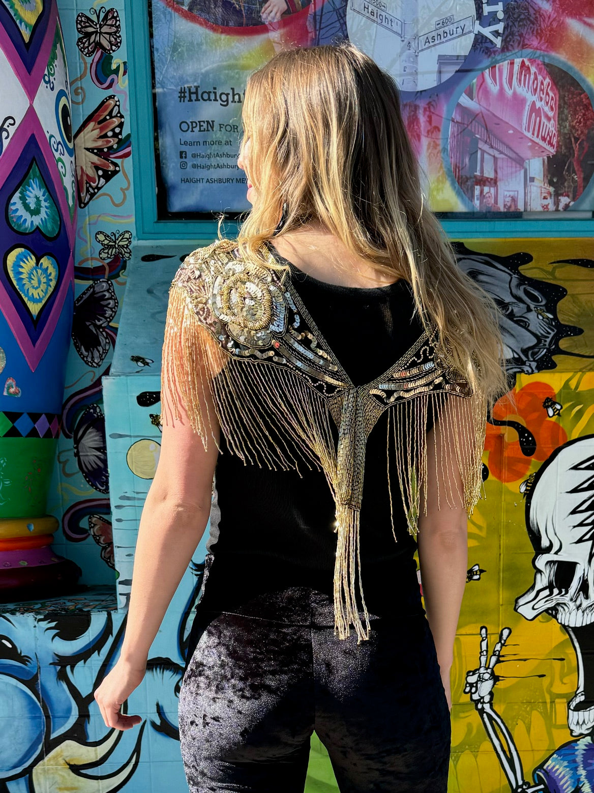 Immerse yourself in the elegance of this Beaded Shawl with Roses. This wrap is a classy addition to any accessory collection. Ideal for a variety of occasions - be it rave, festivals, Halloween, Renaissance or parties. This isn't just an accessory, it's a statement of style and sophistication.