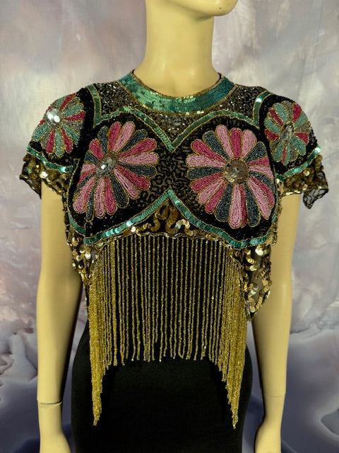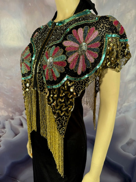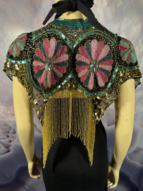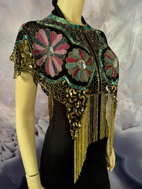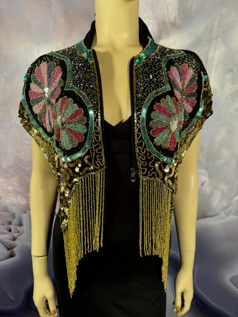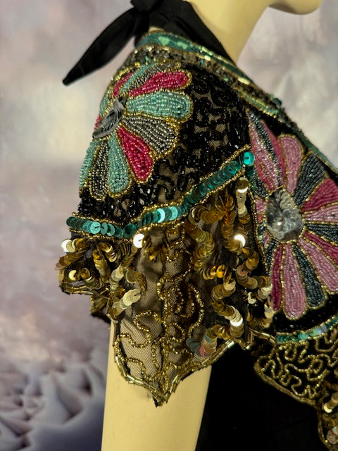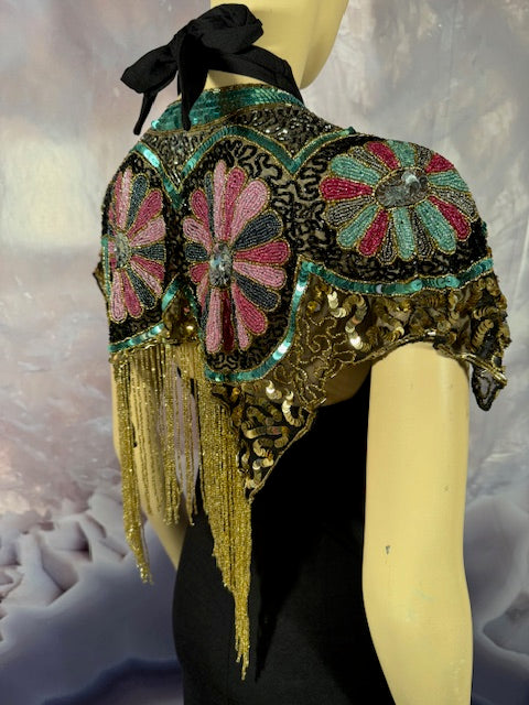 Immerse yourself in the elegance of this Beaded Shawl with Roses. This wrap is a classy addition to any accessory collection. Ideal for a variety of occasions - be it rave, festivals, Halloween, Renaissance or parties. This isn't just an accessory, it's a statement of style and sophistication.