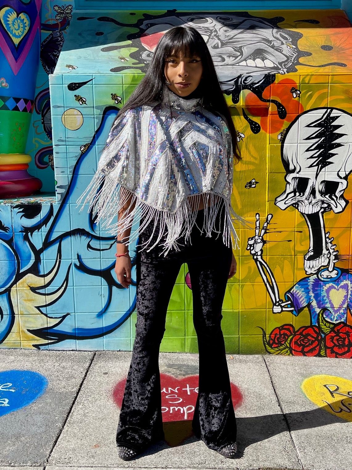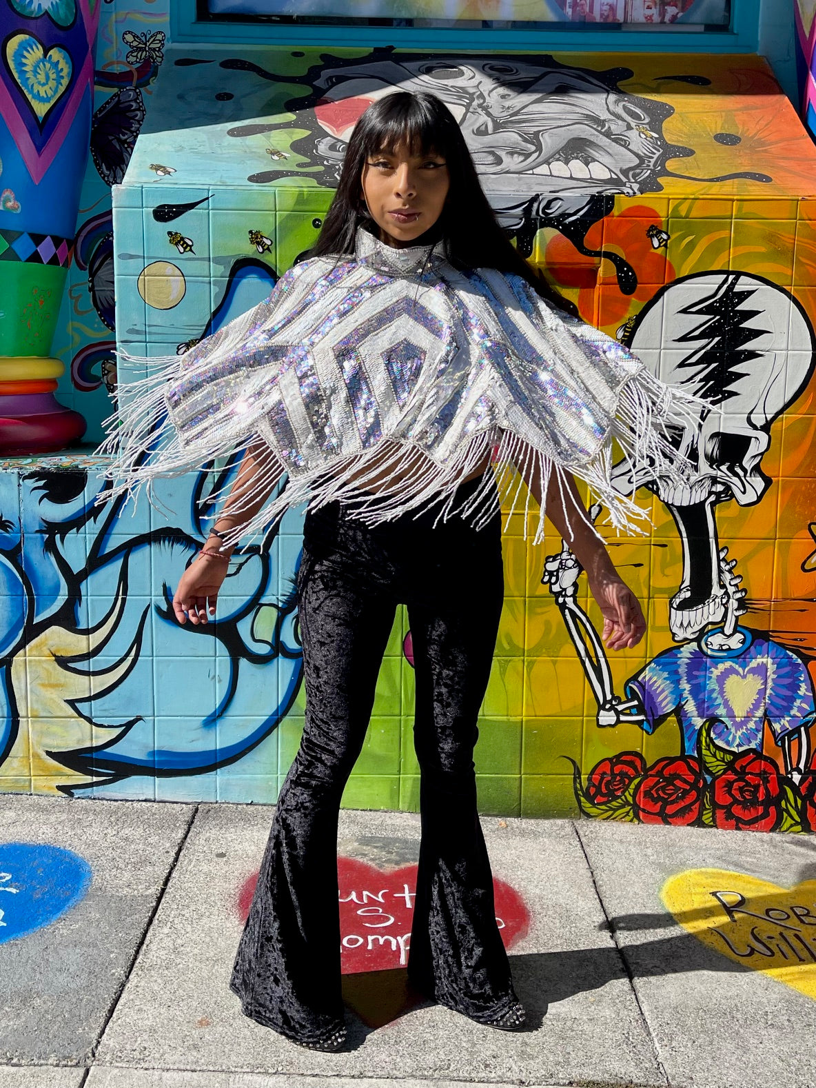 Immerse yourself in the elegance of this Beaded Shawl with Roses. This wrap is a classy addition to any accessory collection. Ideal for a variety of occasions - be it rave, festivals, Halloween, Renaissance or parties. This isn't just an accessory, it's a statement of style and sophistication.