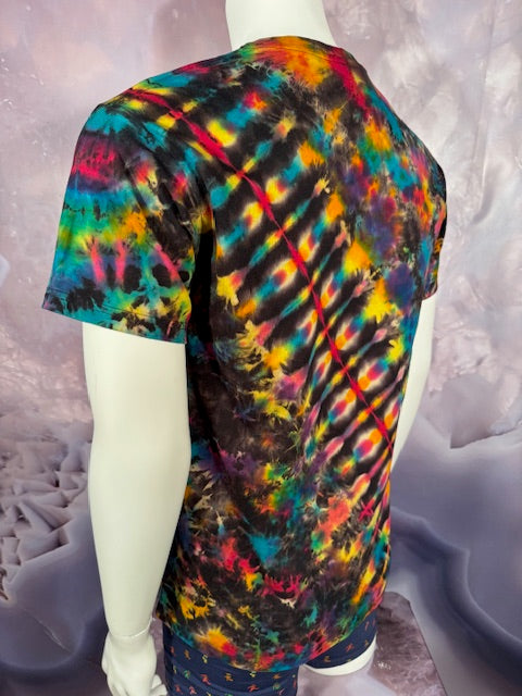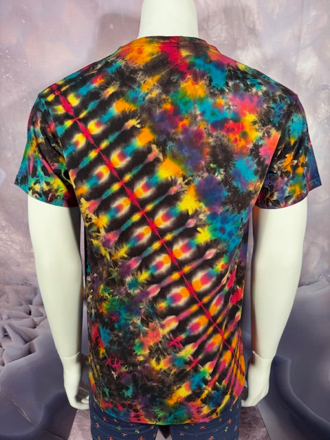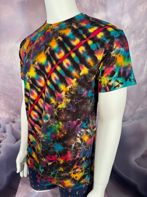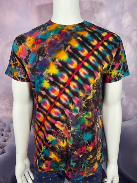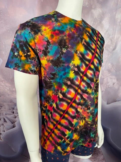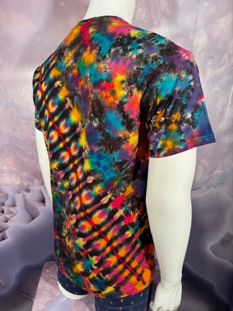 Custom made 100% cotton shirts (not a soft cotton) the shirts started out black then got their REVERSE magic done on them with some ELECTRIC Colors.