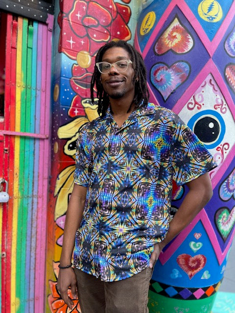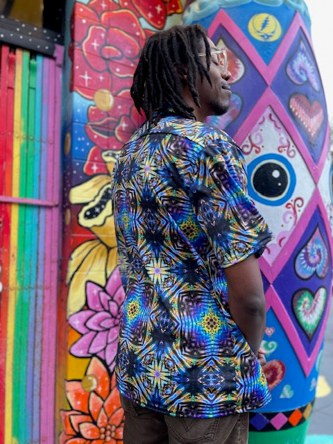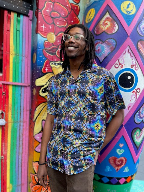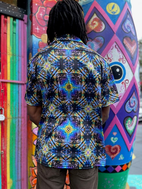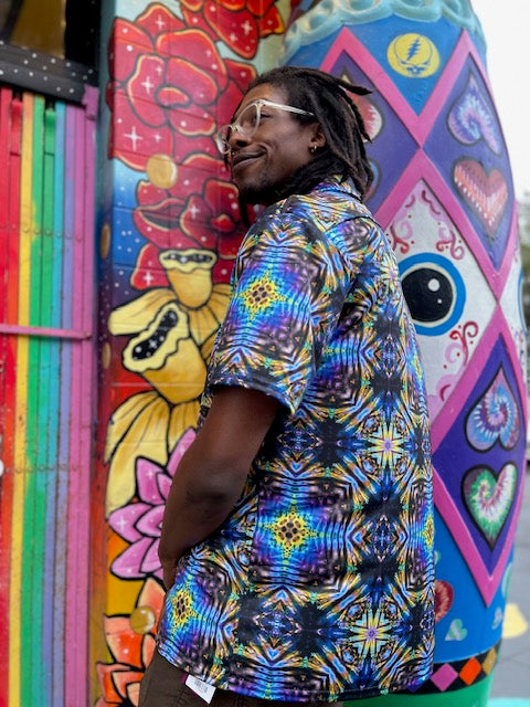 Done with the tiedye morphed artwork of Ravan Alexandra these button downs embody effortless style with a strong attention to detail. Featuring a relaxed silhouette and constructed from a breathable UPF50+ fabric, this will be sure to put you in an island state-of-mind.