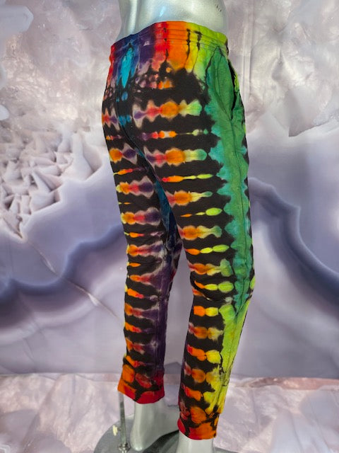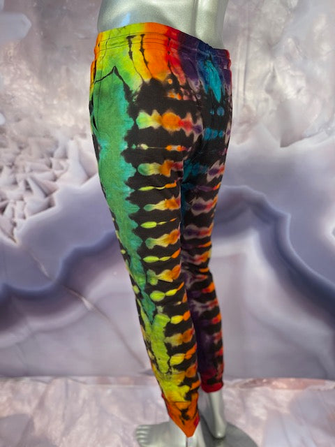 She boiled out the color of the joggers so she could put some rainbows all over them!