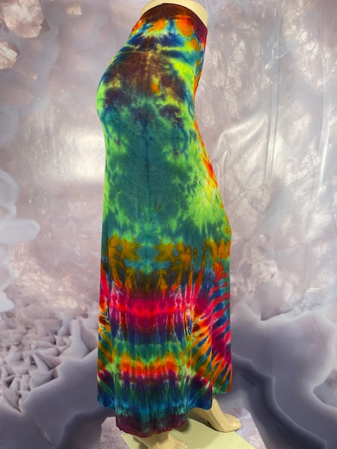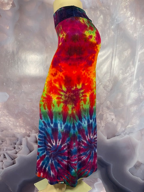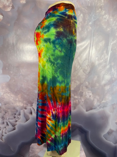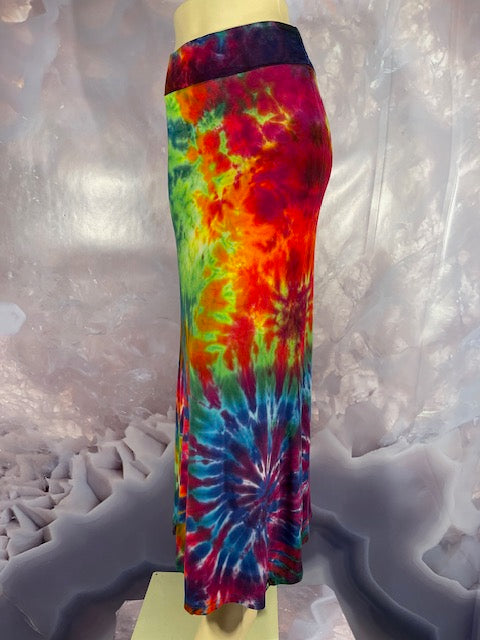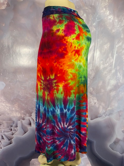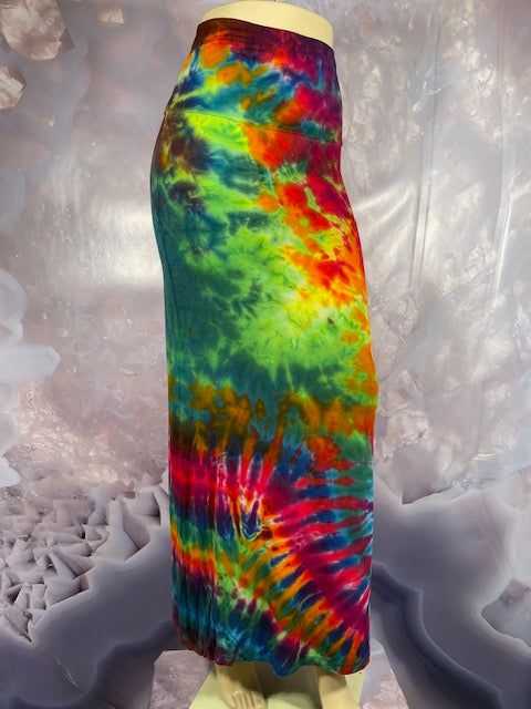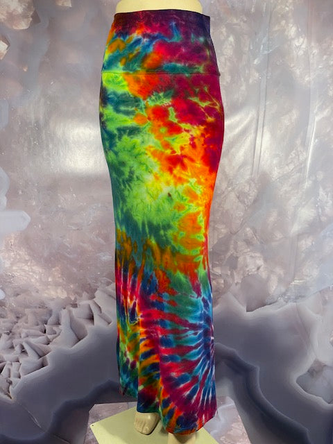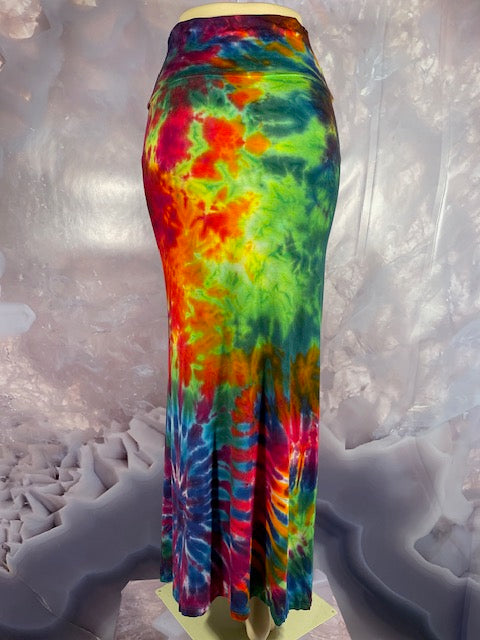 Liquid Dyed in our tiedye studio in the Haight Ashbury by Ravan Alexandra. We love the colors in this skirt and the fit as well.