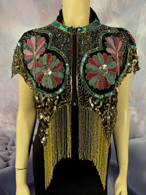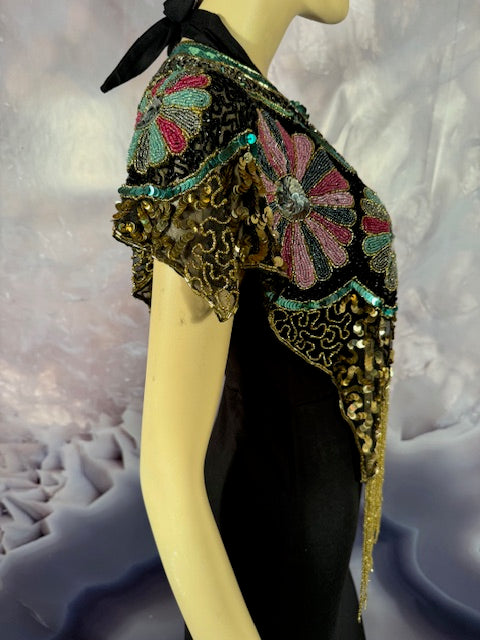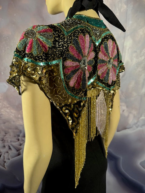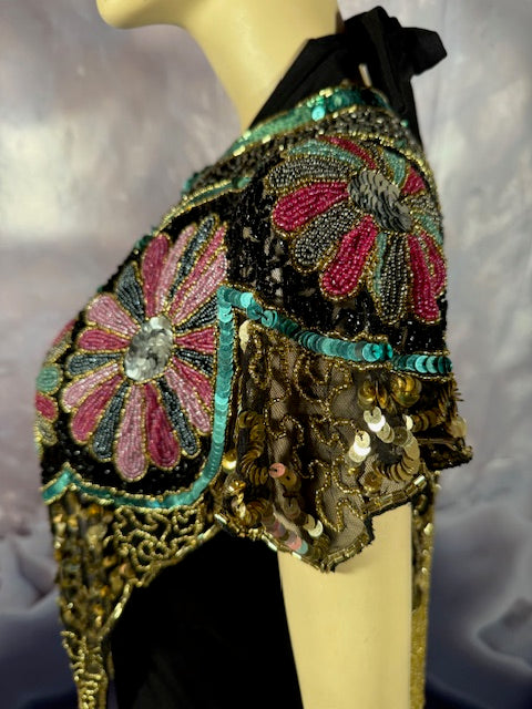 Immerse yourself in the elegance of this Beaded Shawl with Roses. This wrap is a classy addition to any accessory collection. Ideal for a variety of occasions - be it rave, festivals, Halloween, Renaissance or parties. This isn't just an accessory, it's a statement of style and sophistication.