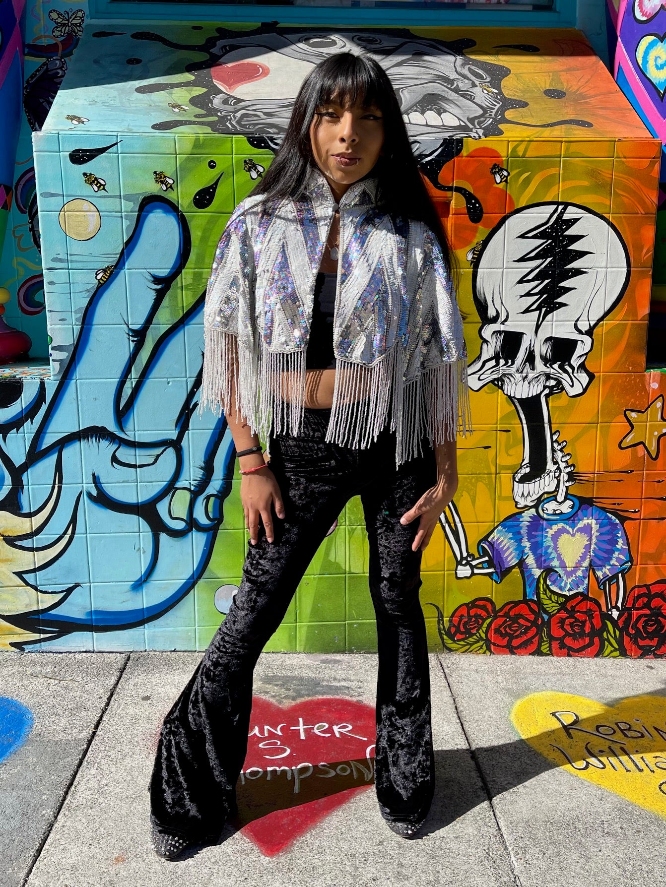 Immerse yourself in the elegance of this Beaded Shawl with Roses. This wrap is a classy addition to any accessory collection. Ideal for a variety of occasions - be it rave, festivals, Halloween, Renaissance or parties. This isn't just an accessory, it's a statement of style and sophistication.