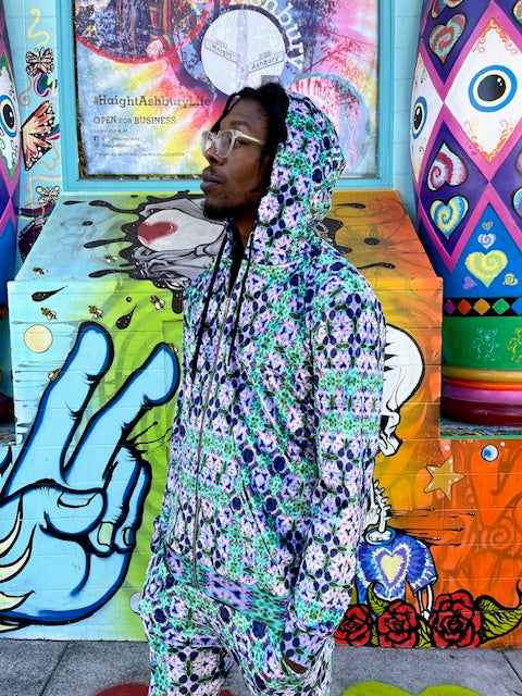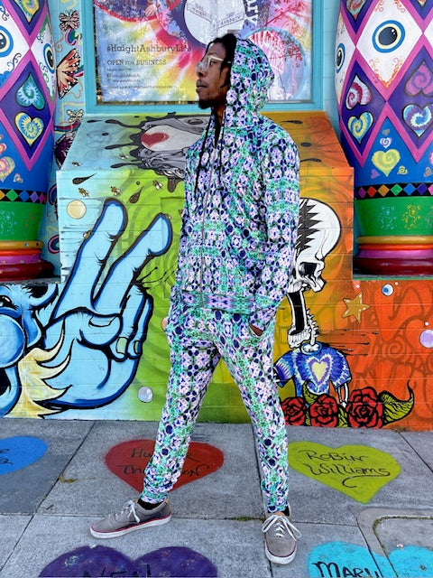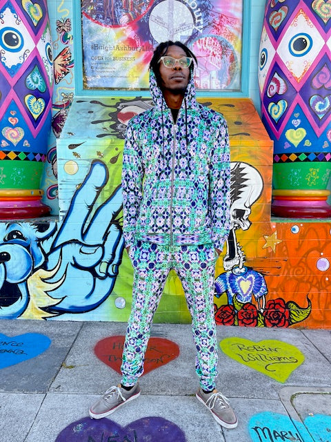 The zip up hoodie is unisex and comes with matching jogger pants to complete the full look! Check it out.