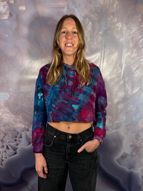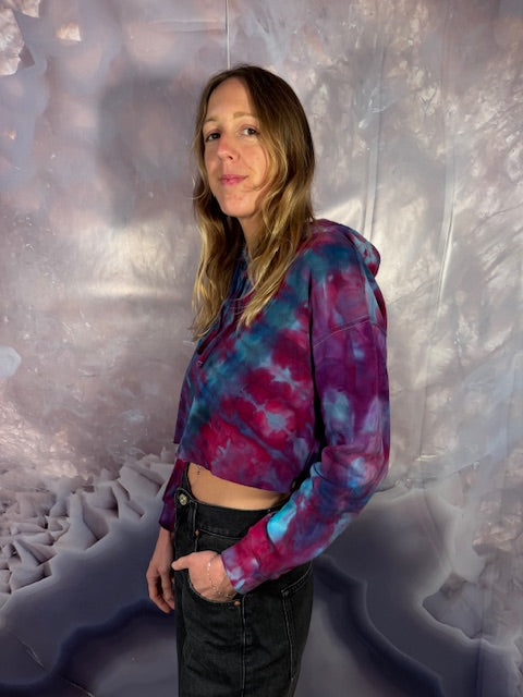They are here!  The hoodie that gives your belly some air!  Super soft ~ Independent Brand Hoodie trimmed for the perfect crop hoodie tiedyed by the amazing Merrideth from Soul Shine Maine in Maine!