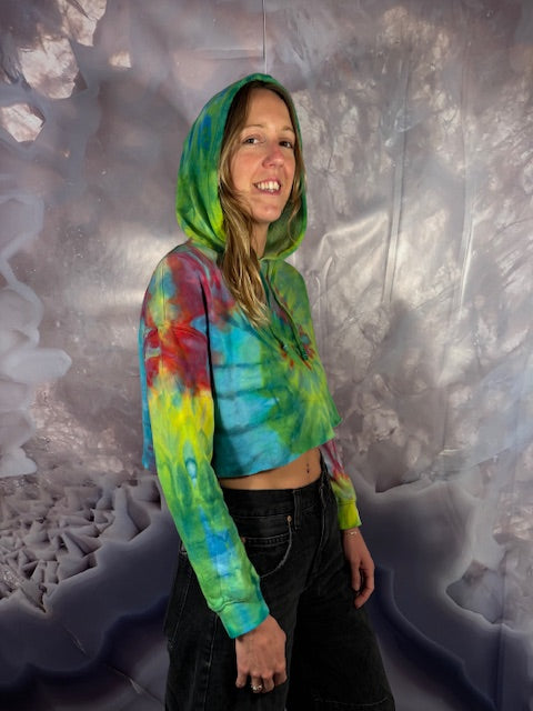 They are here! The hoodie that gives your belly some air! Super soft ~ Independent Brand Hoodie trimmed for the perfect crop hoodie tiedyed by the amazing Merrideth from Soul Shine Maine in Maine!
