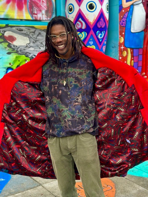 Lined in silk, made in SF, reversible and hand dyed with Ice by our very own Sunshine Powers in our Colors of Love Studio in the Haight Ashbury.