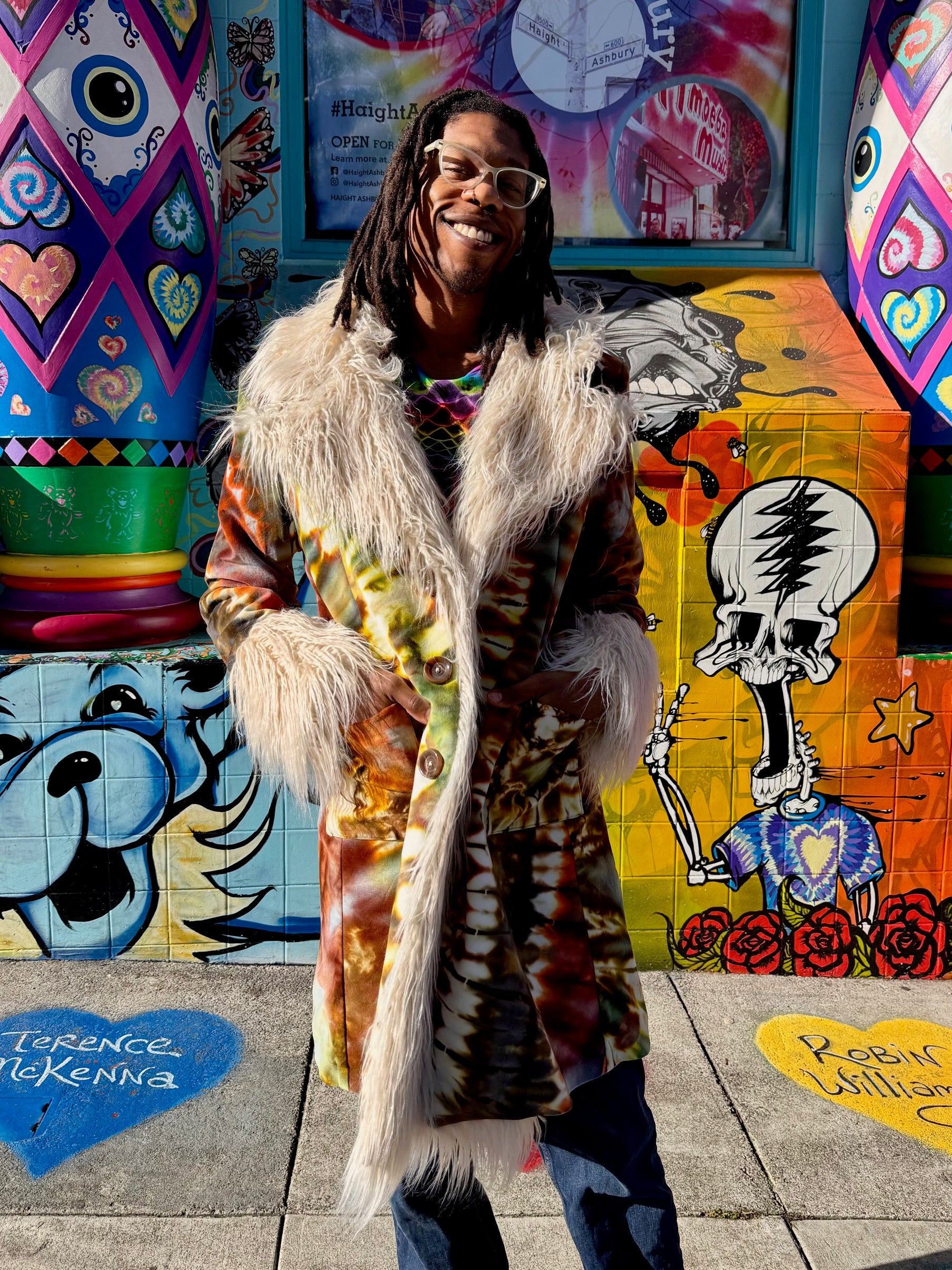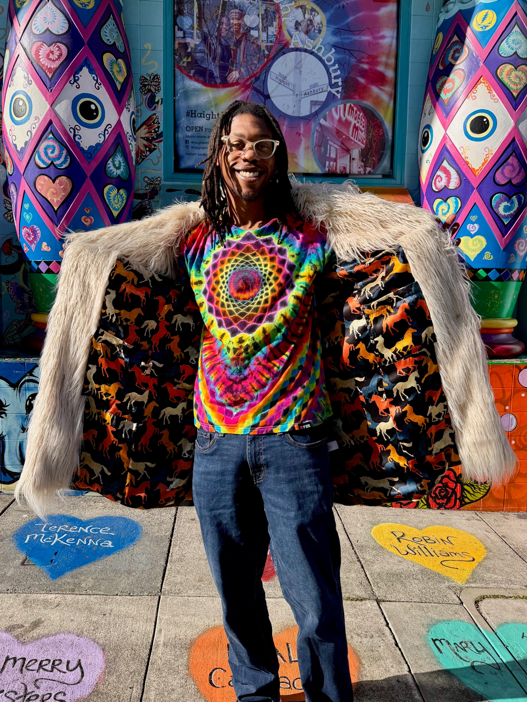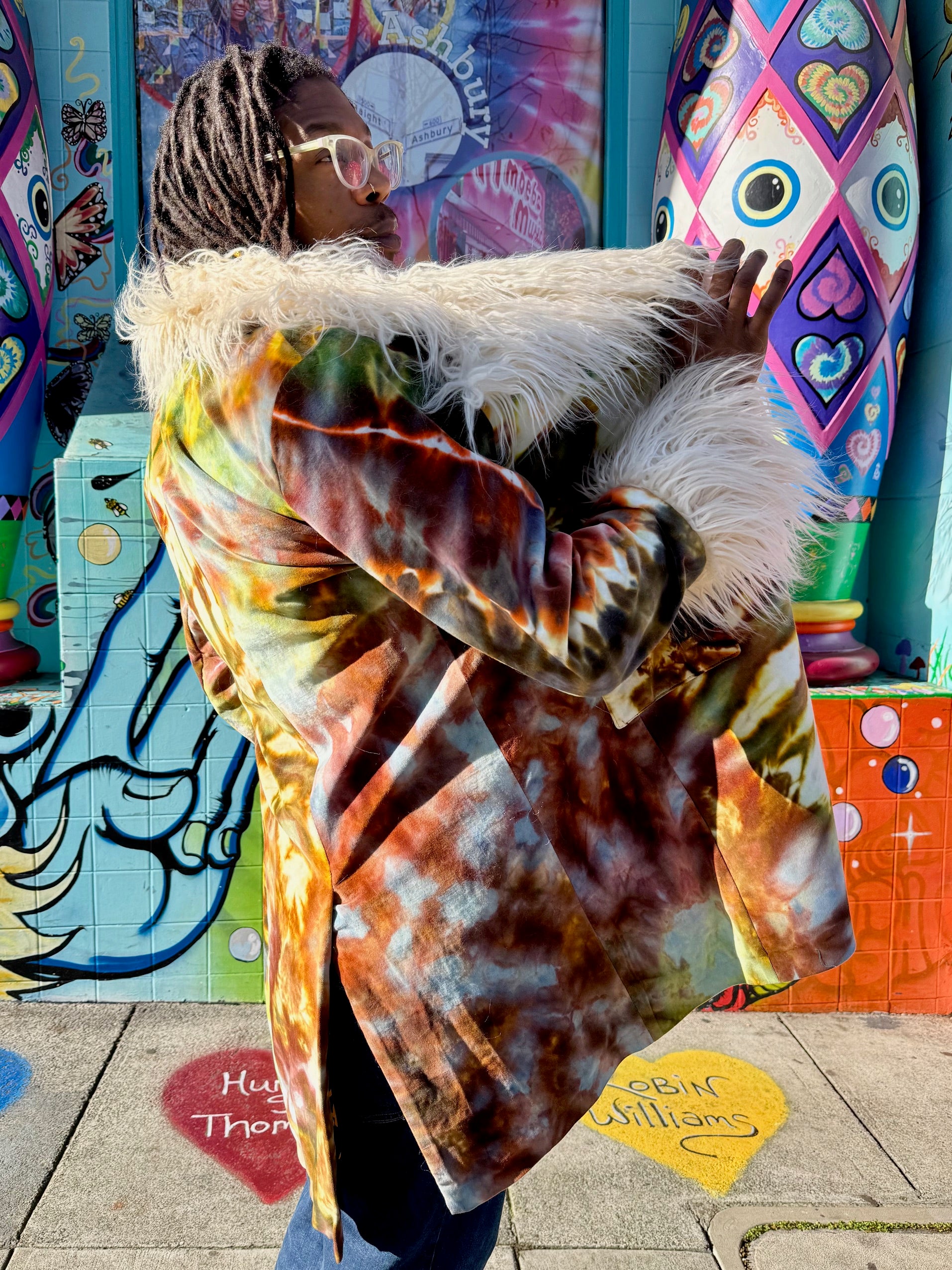Lined in silk, made in SF, reversible and hand dyed by our very own Mila T at Colors of Love our tiedye educational center in the Haight Ashbury.