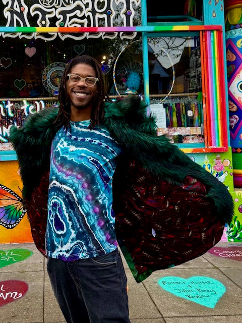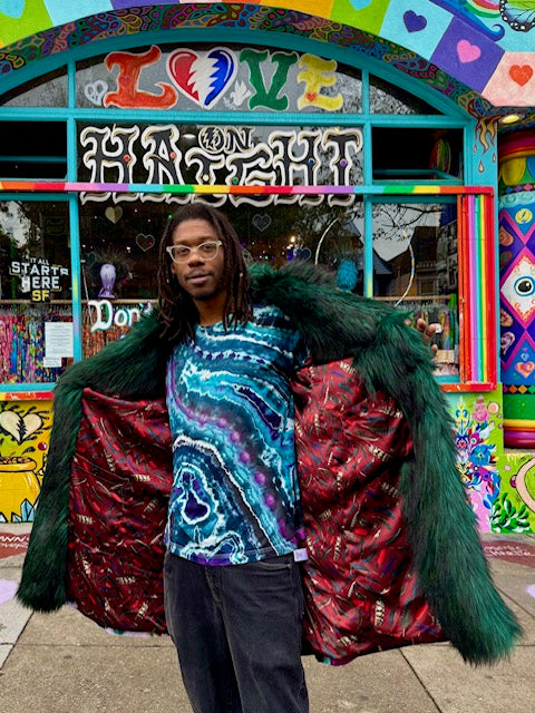 Lined in silk, made in SF, reversible and hand dyed by us here in Haight Ashbury by our Very own MILA T at our Colors of LOVE Tiedye Education Center!
