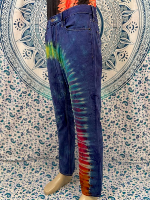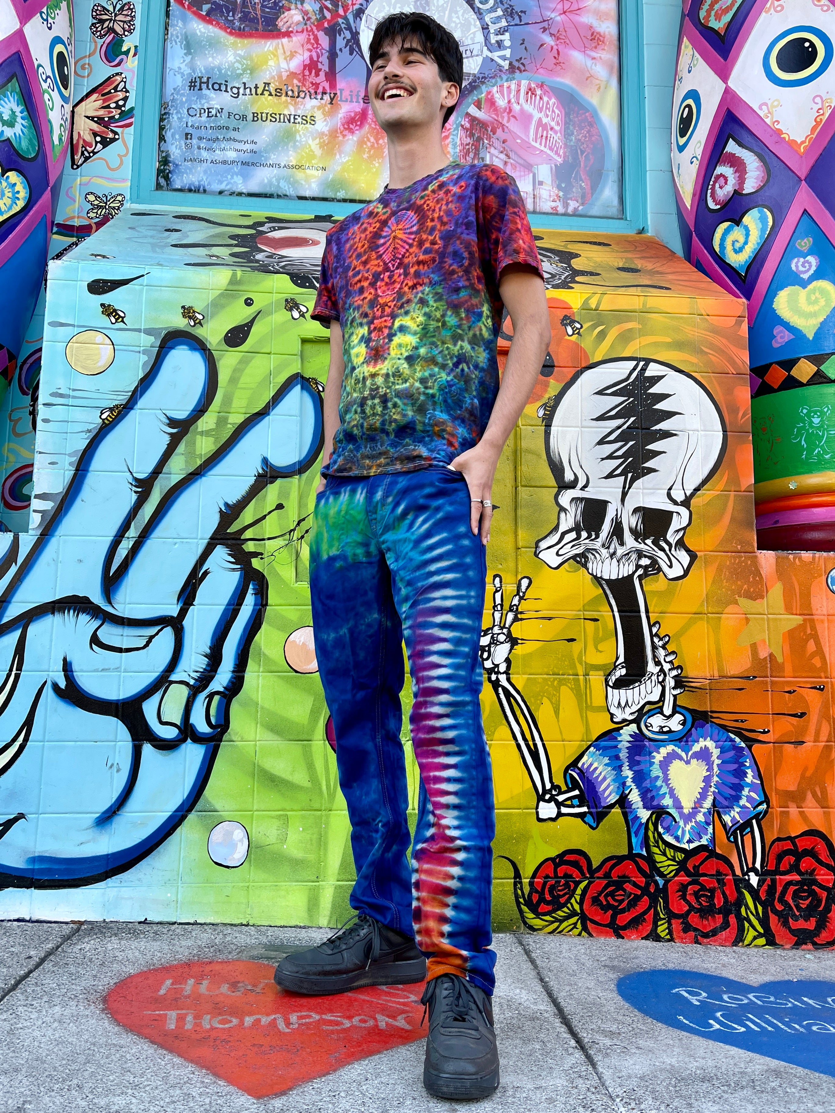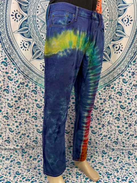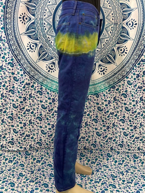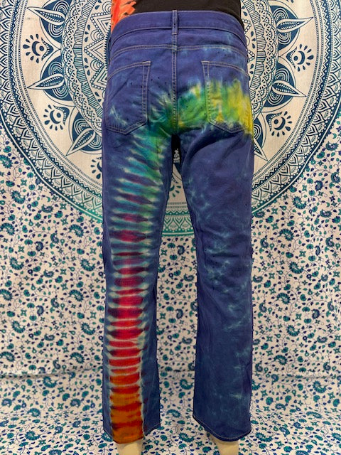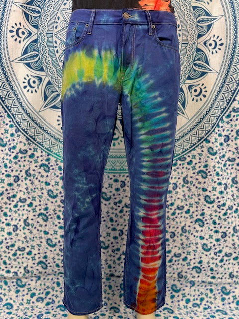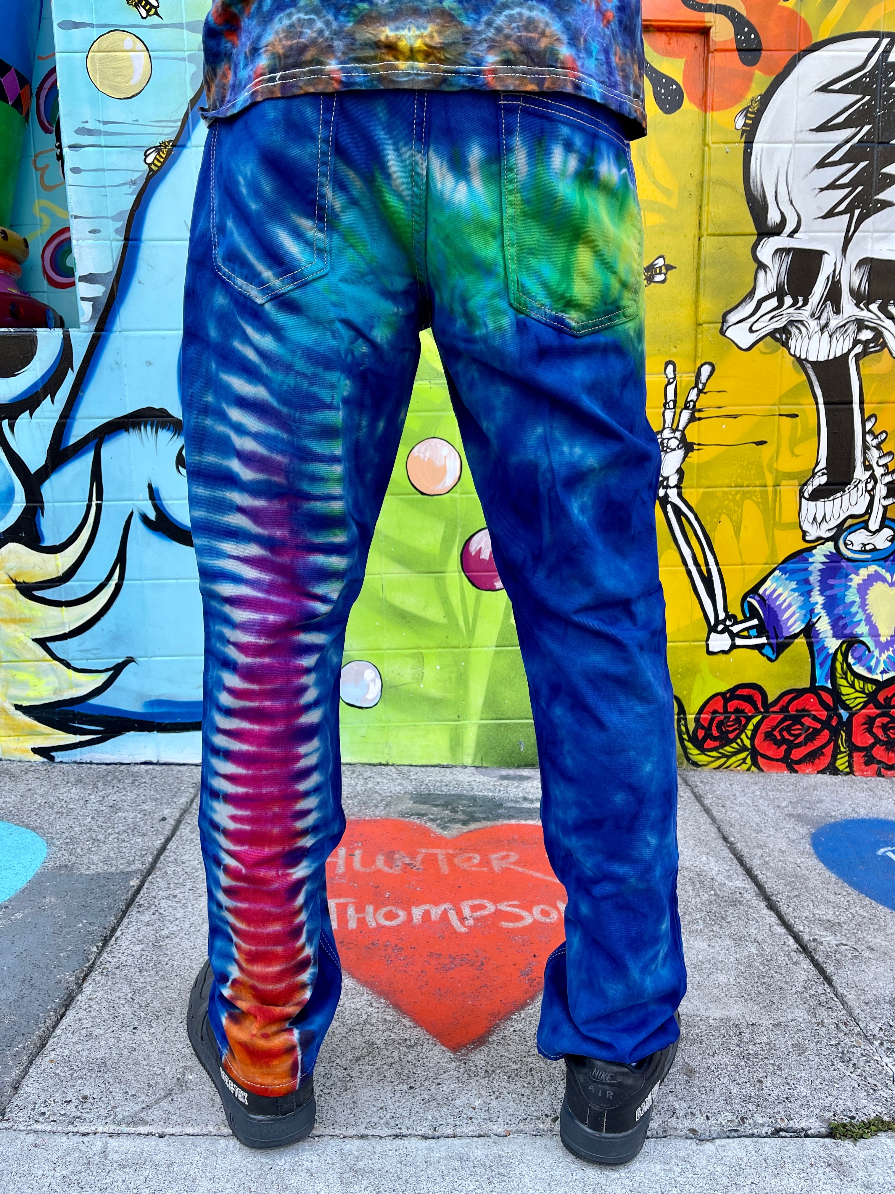 Tiedyed just a few blocks away in our tiedye studio in the Haight Ashbury by our very own Ravan Alexandra, these jeans are a SOFT Denim/Canvas blend from Old Navy and are a Straight Leg.