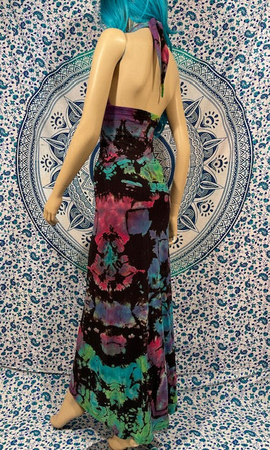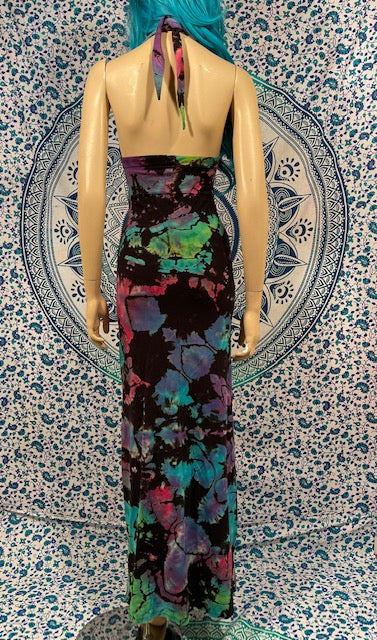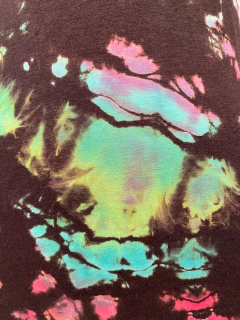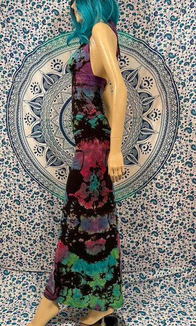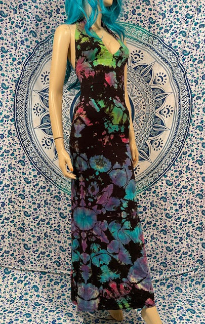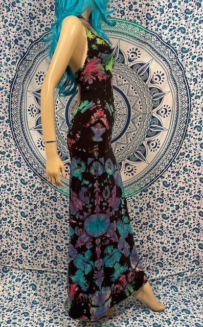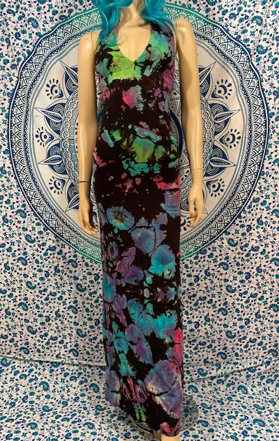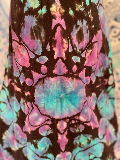 We then send the black ORGANIC Bamboo dress to our traveling tiedyer Michael Martelli where he does his reverse awesomeness on them!