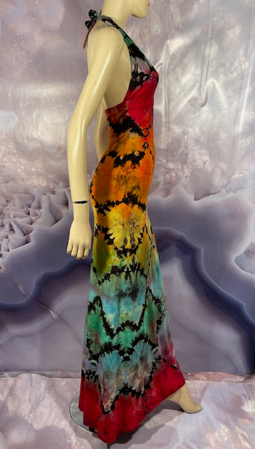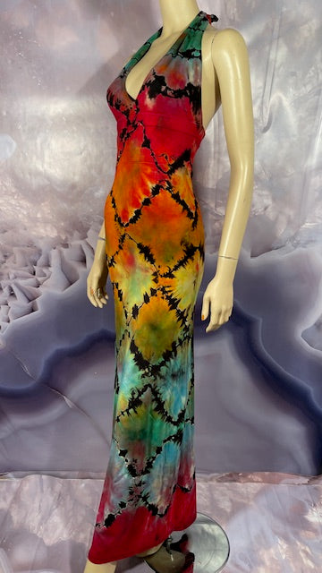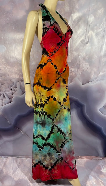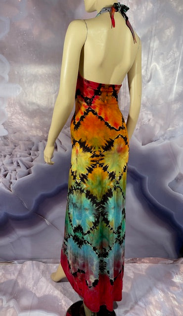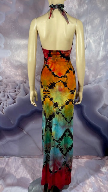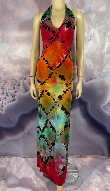 We then send the black ORGANIC Bamboo dress to our traveling tiedyer Michael Martelli where he does his reverse awesomeness on them!