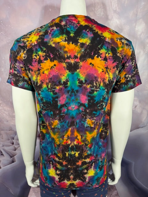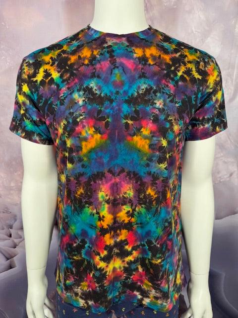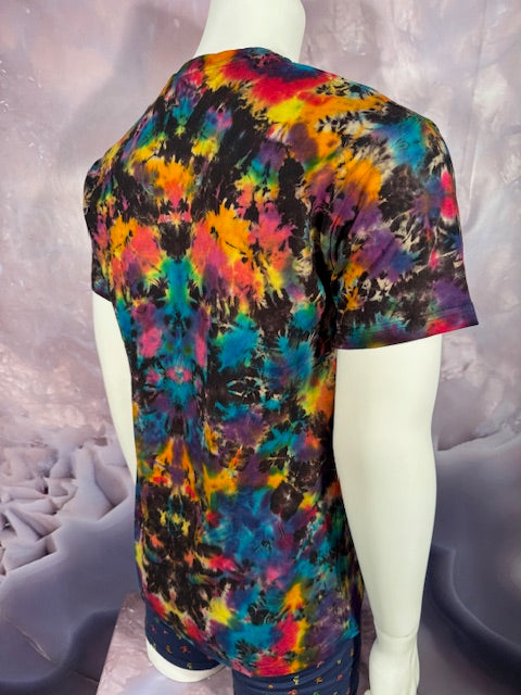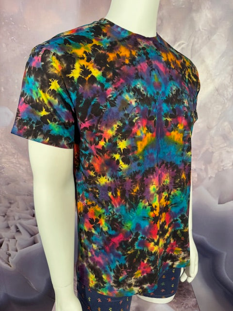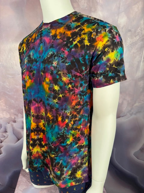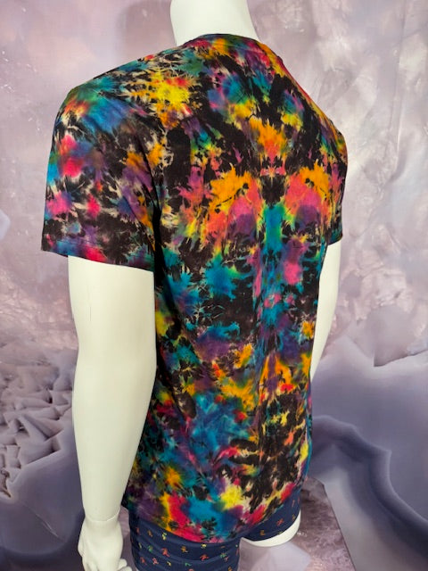 Custom made 100% cotton shirts (not a soft cotton) the shirts started out black then got their REVERSE magic done on them with some ELECTRIC Colors.