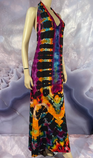 The Dress has a halter top that is tie as well as a built in bra with the elastic under the chest.