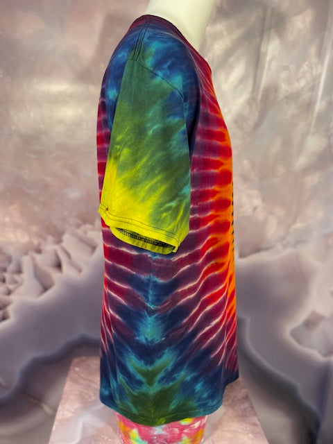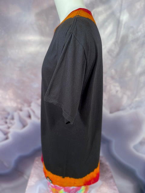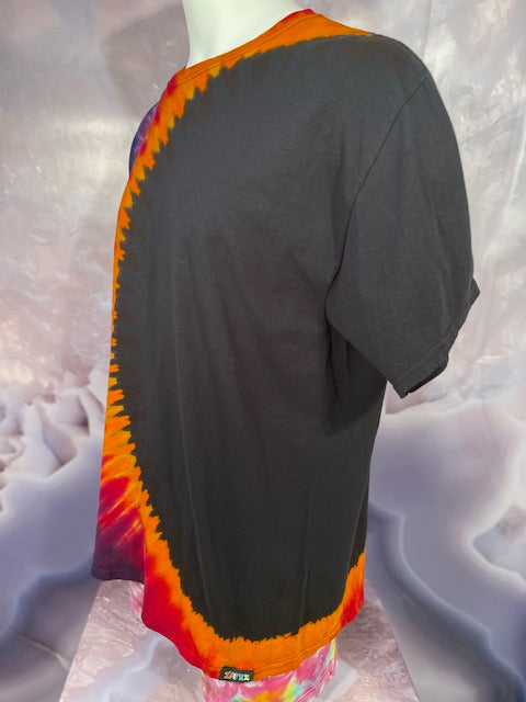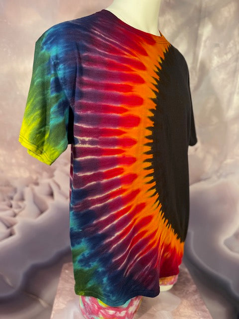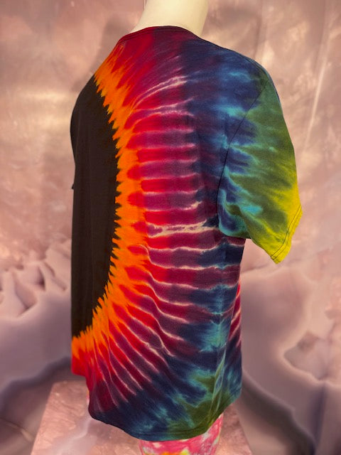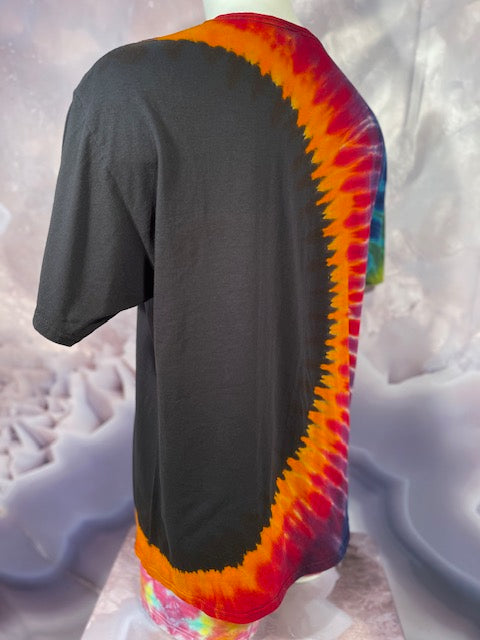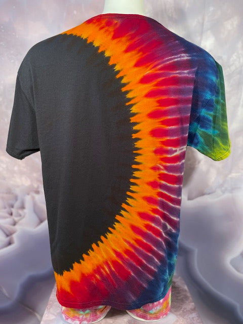 These shirts start off as a black blank and then Ravan removes the color before adding rainbows... giving these a magical depth of color!