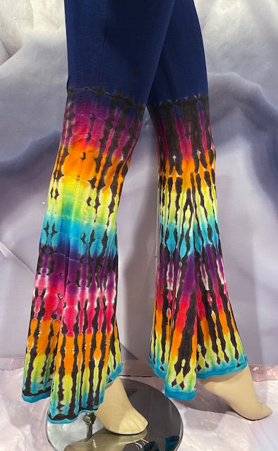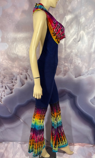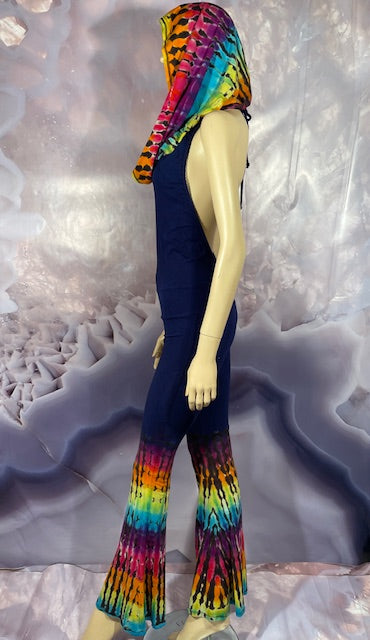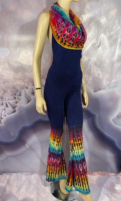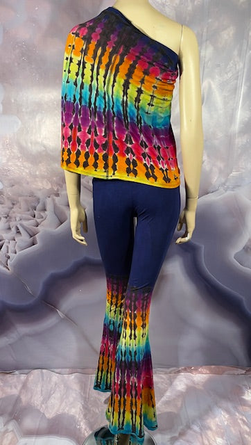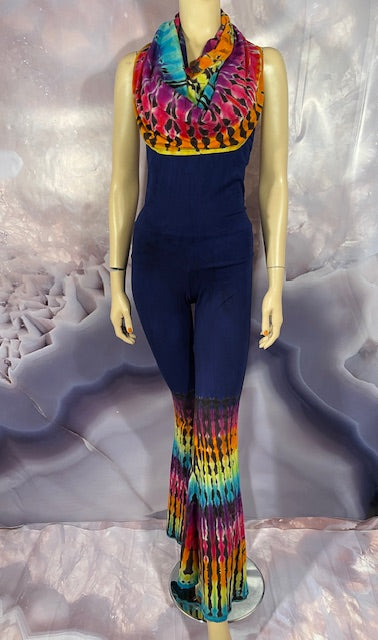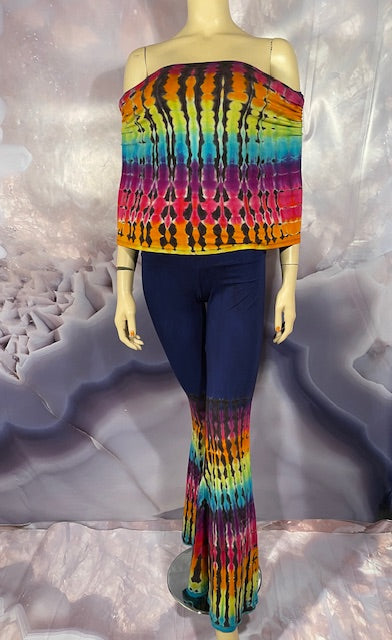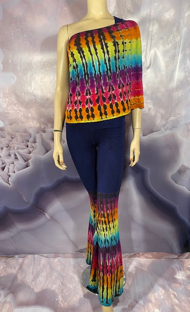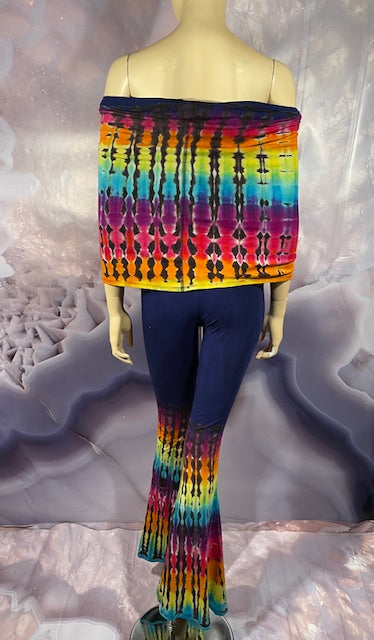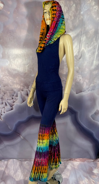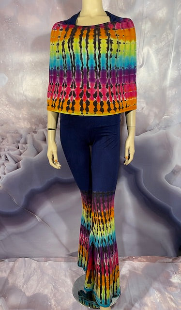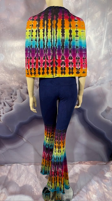 This is a lot of outfit in one! The black blank is made here in San Francisco out of Organic Bamboo Cotton and then we send it off to the amazing duo Jolene & Bobby of Hometown Tiedye (some of our favs!) who do their reverse action on these amazing pieces and then adds color!