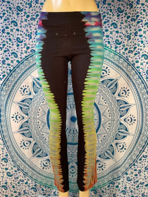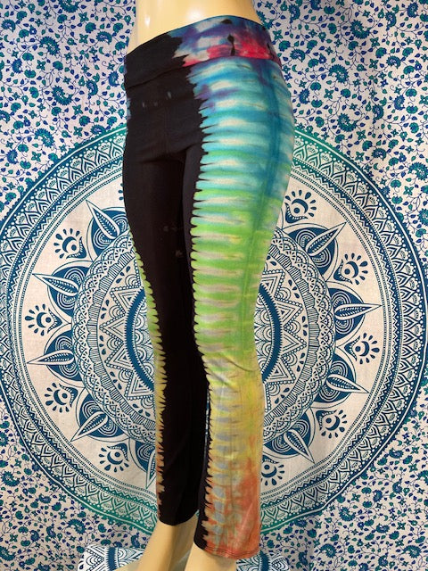 These magical American Made Royal Apparel yoga pants with fold over waist started off black, then Michael Martelli during his stay in Florida made these SUPER magical and added some color...for rainbow richness like never before!