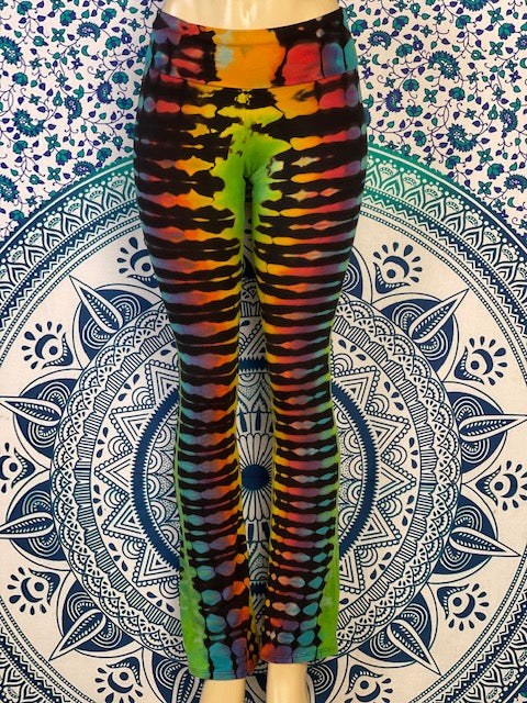 These magical American Made Royal Apparel  yoga pants with fold over waist started off black, then Michael Martelli during his stay in Florida made these SUPER magical and added some color...for rainbow richness like never before!