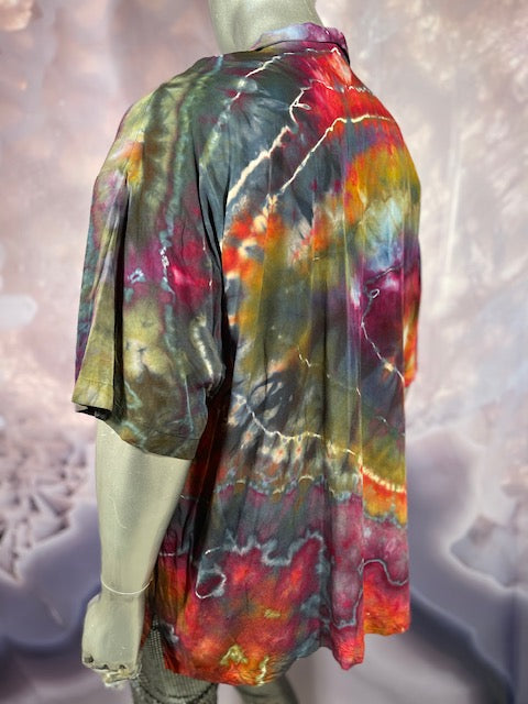 Stay airy and free flowing in this tiedye Button Down...it can also button up...dyed by Marybgorund aka Mary Beth Osburn from Colorado !