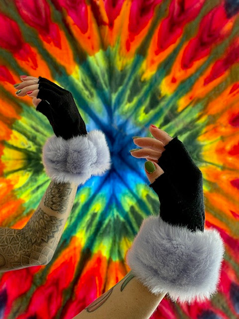 Keep Warm with a little Flare.  Hand made here in San Francisco by the cutest old lady named Ausa (We love her!)  These gloves are perfect for every night, going on a walk, out on the town or staying warm at a festival....your wrist will feel like they are being snuggled.
