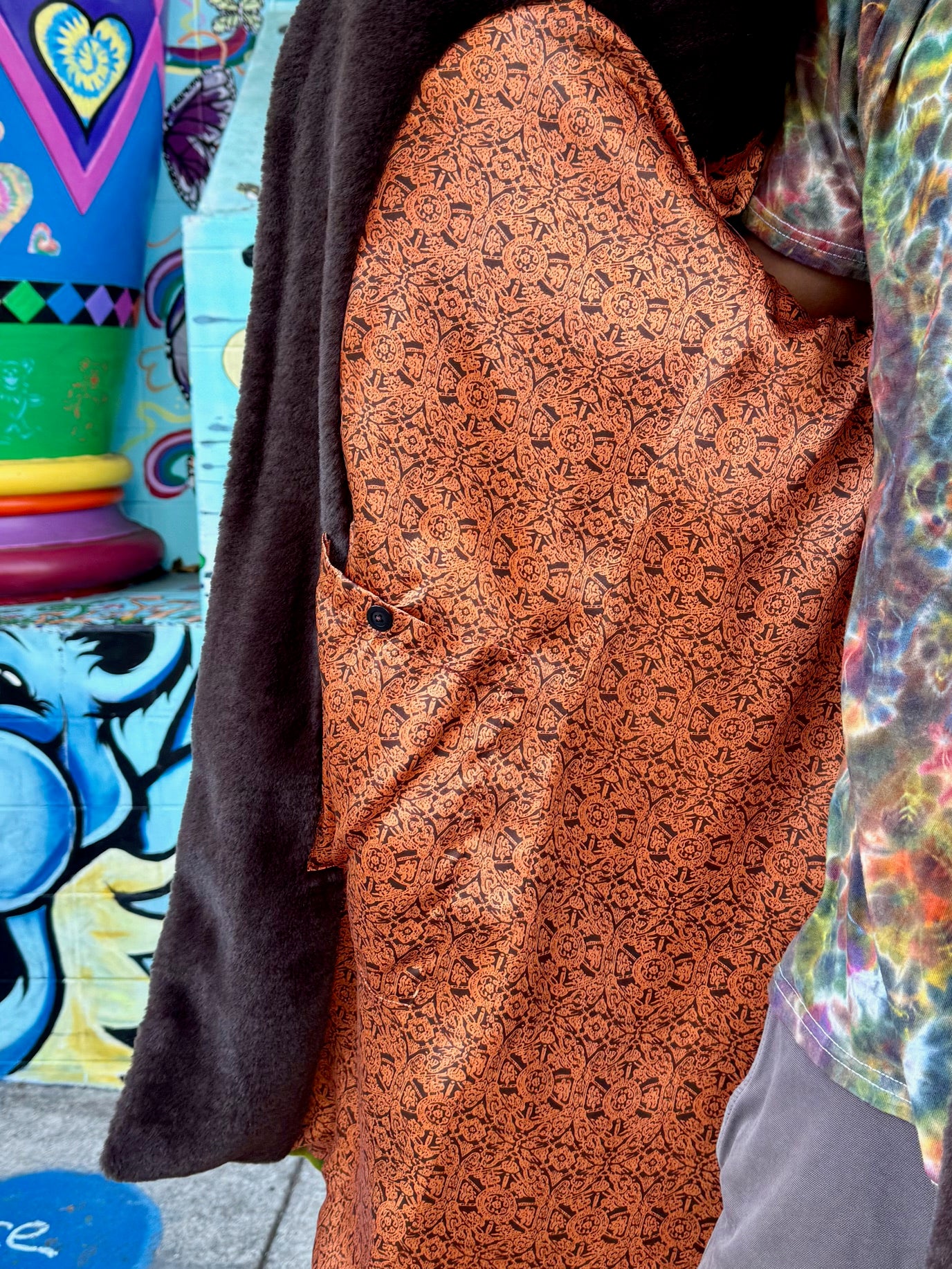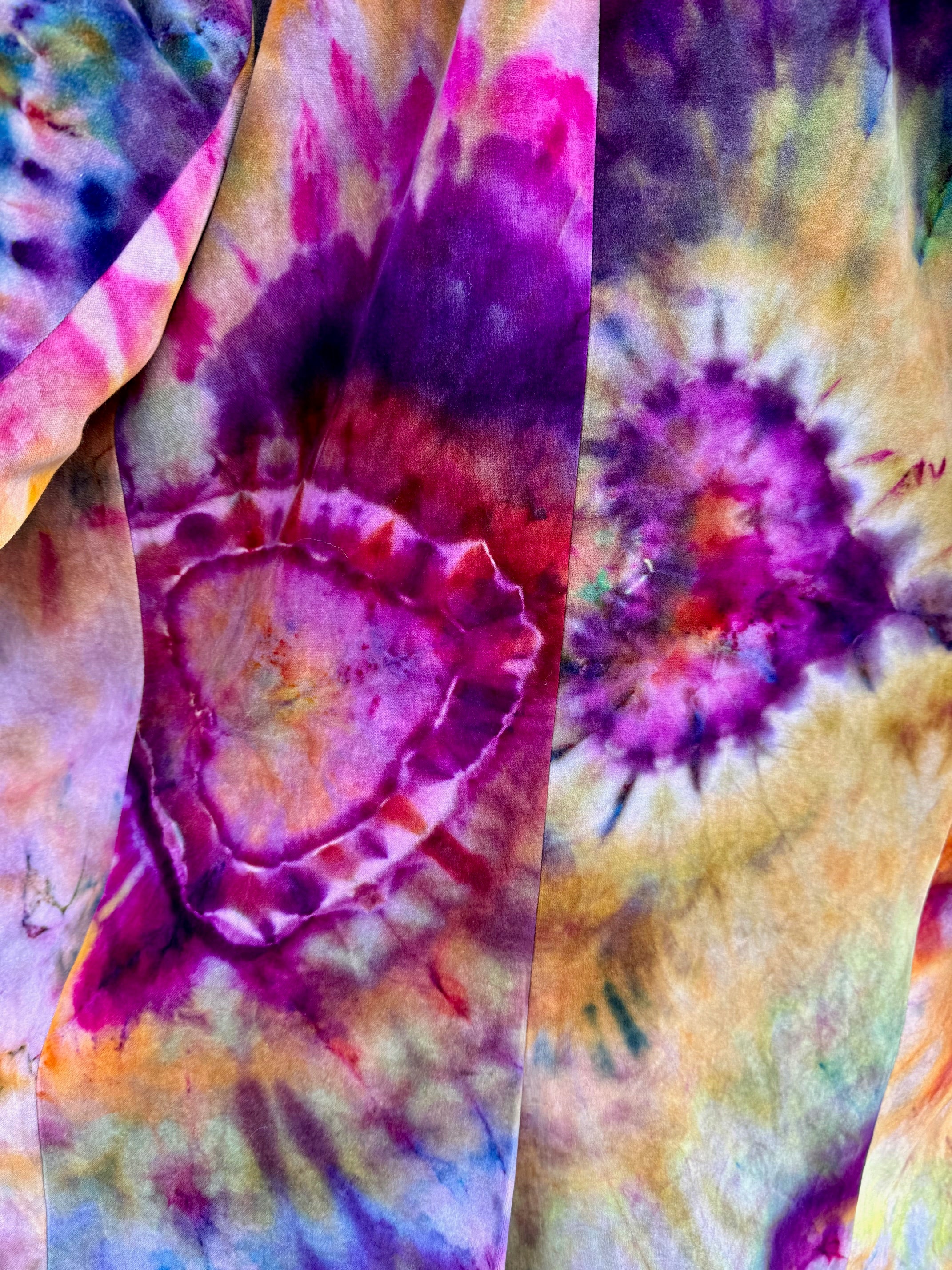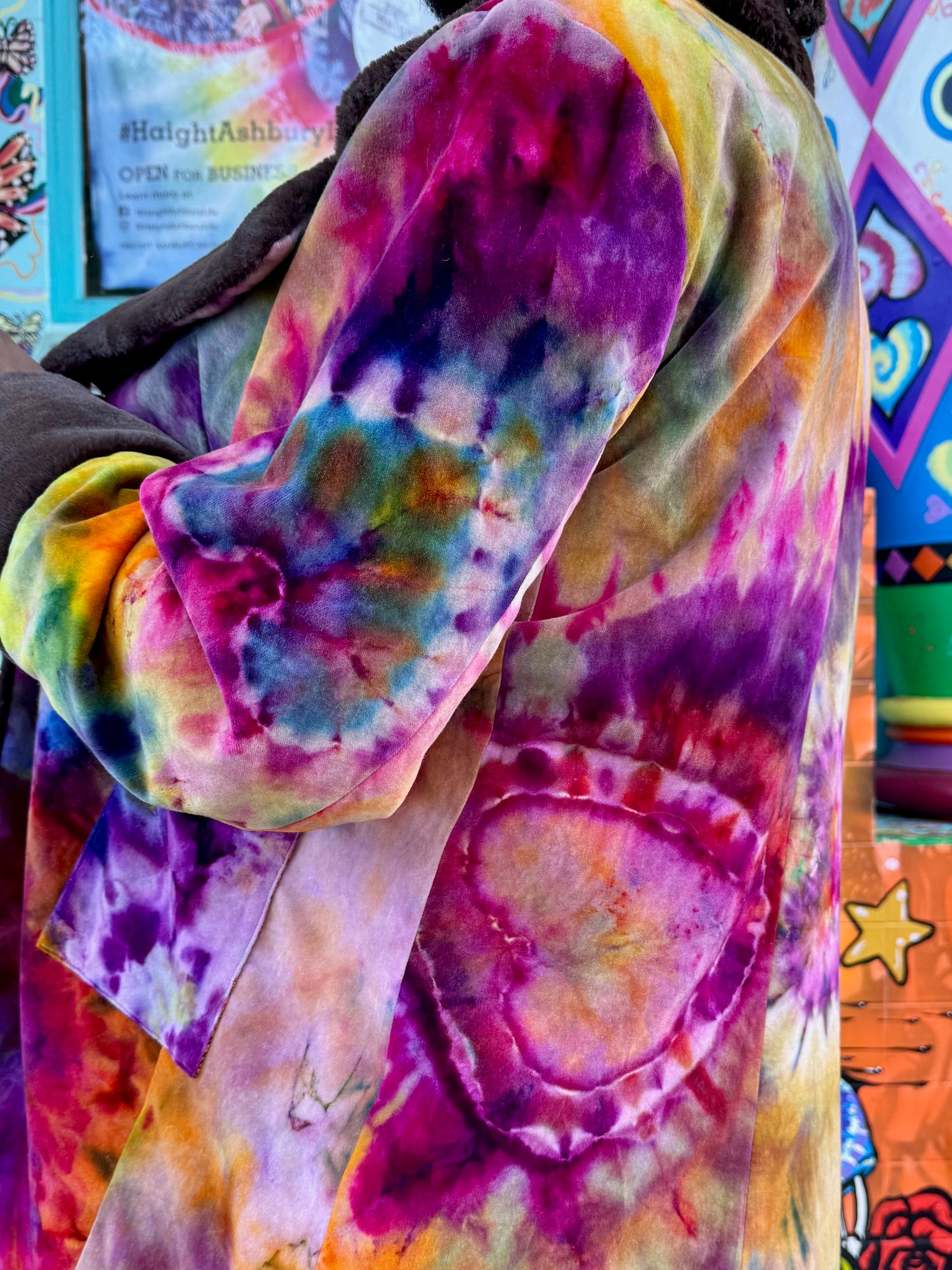 Lined in silk, made in SF, reversible and hand dye by Sunshine tiedye of Traceym California