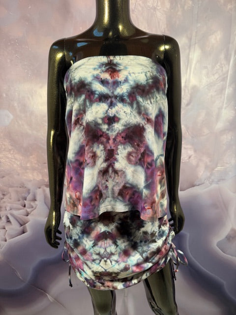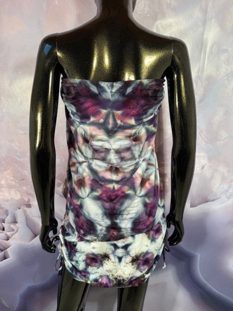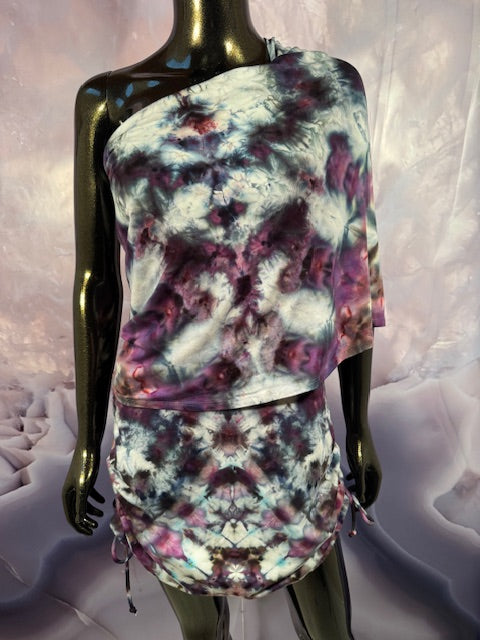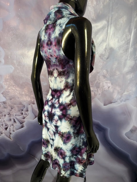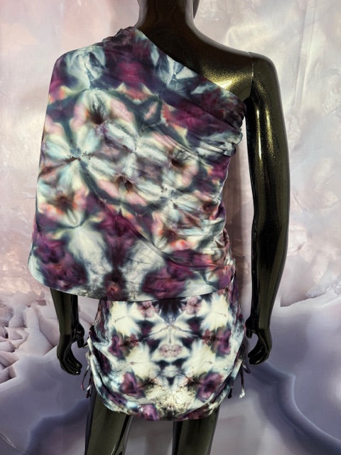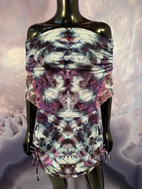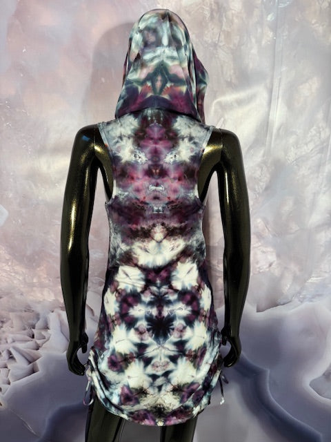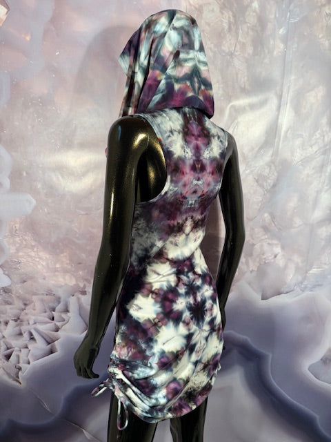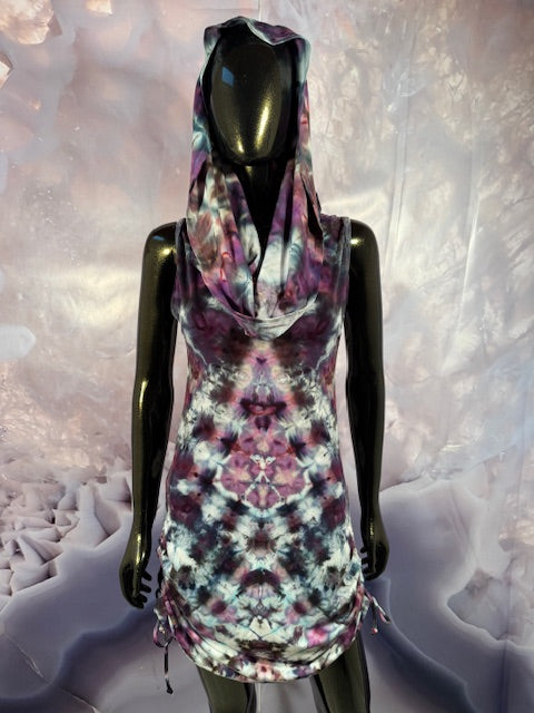 This dress may be worn as a Dress with a Cowl Neck, you can move that neck to a hood, or pull it over your shoulders to keep warm...WAIT...there is more, slip your arm out and have this epic one shoulder look or pop the other arm out and it is a tube top...AND you can pull up the strings in the skirt and bring it up, up, UP as short as you wanna go...even till that dress becomes a shirt.