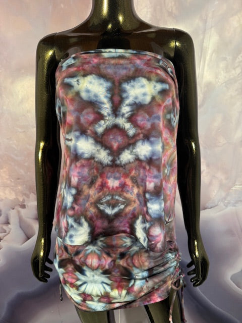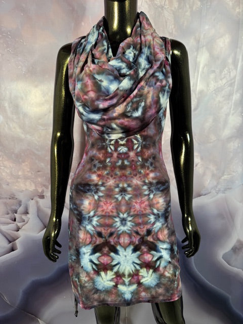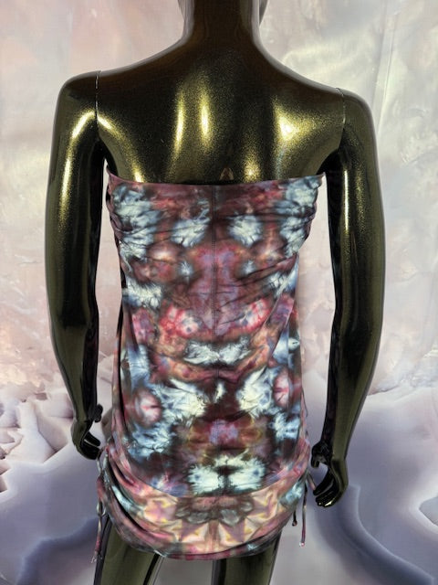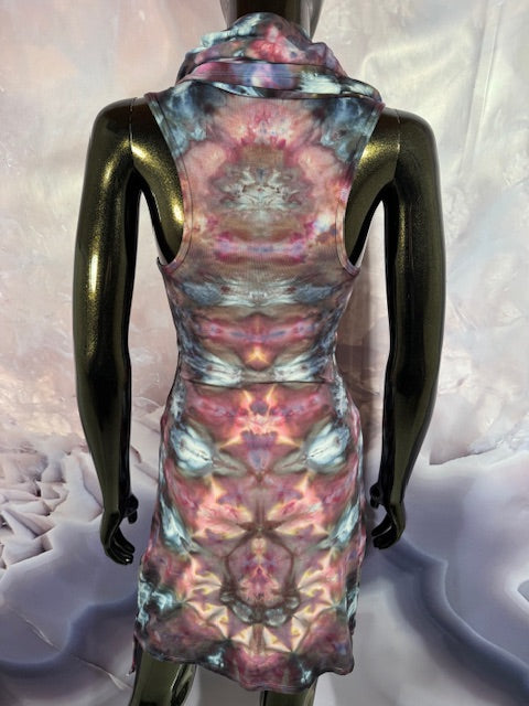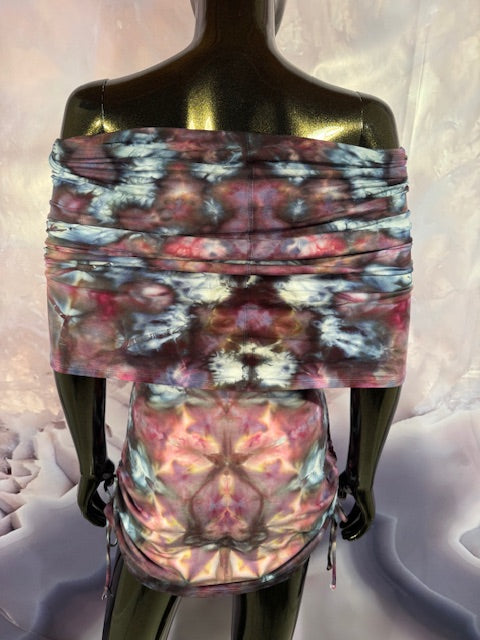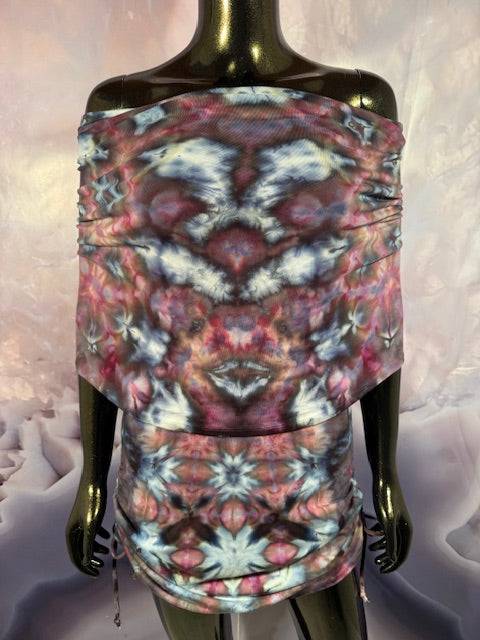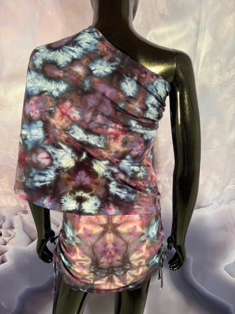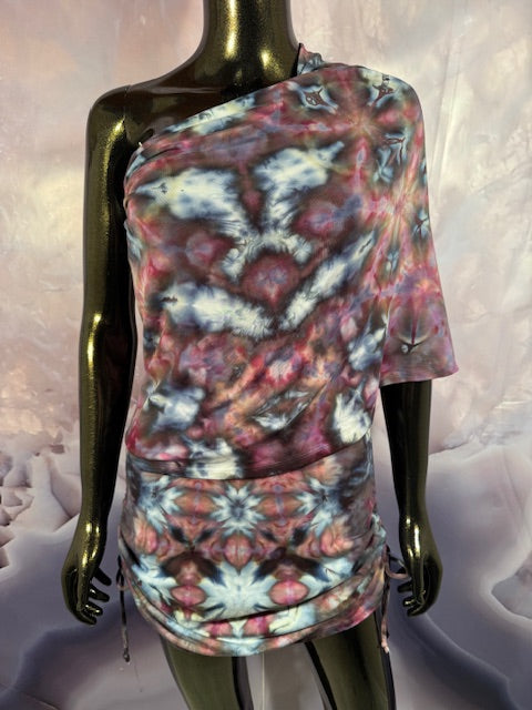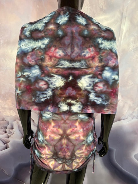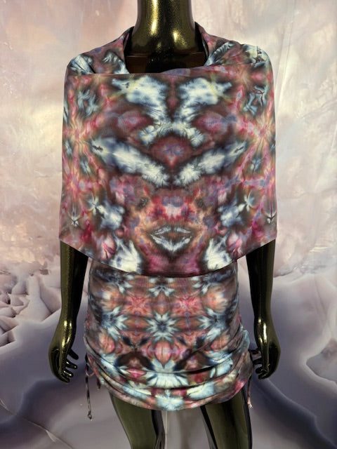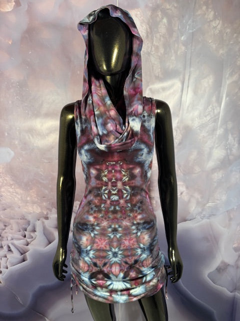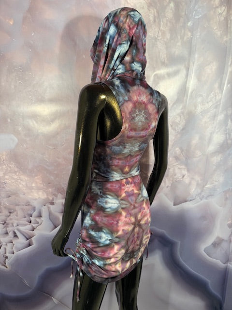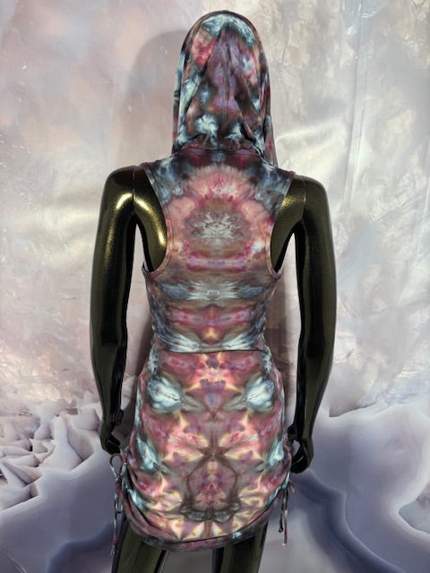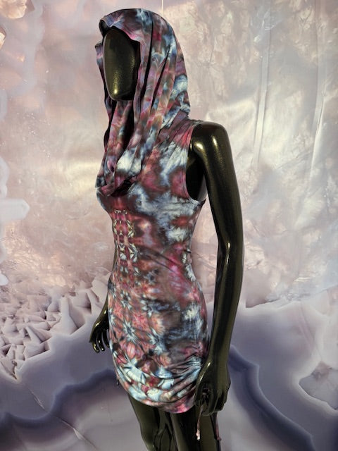 This dress may be worn as a Dress with a Cowl Neck, you can move that neck to a hood, or pull it over your shoulders to keep warm...WAIT...there is more, slip your arm out and have this epic one shoulder look or pop the other arm out and it is a tube top...AND you can pull up the strings in the skirt and bring it up, up, UP as short as you wanna go...even till that dress becomes a shirt.