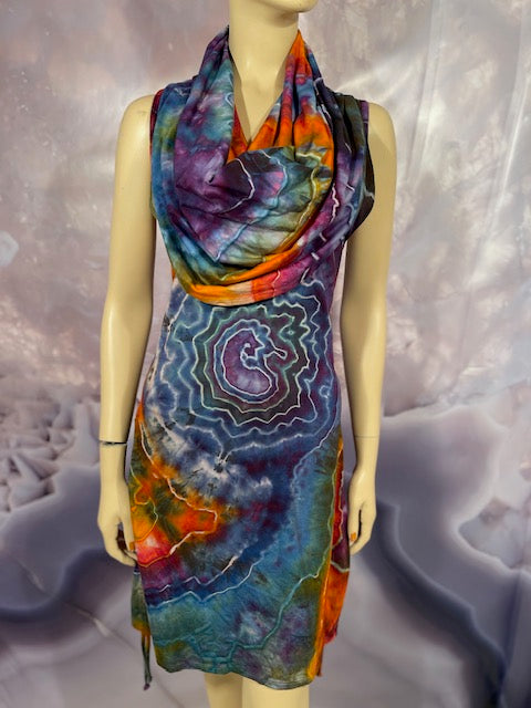 The Blank dress is made in San Francisco by Warrior Within Designs out of 100% Organic Bamboo Cotton and then we mail off to Mary Beth Osburn (aka Marybgoround Dyes) in Colorado to create her earthy love on these amazing pieces.