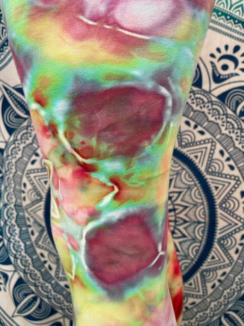 Introducing....one of kind tie dyed leggings from the Artist: Corn Dog.  Man these dyes are tasty!!  Corn Dog is one of our fav ice tie dyed artist.  Each dye is like a water color!
