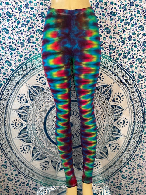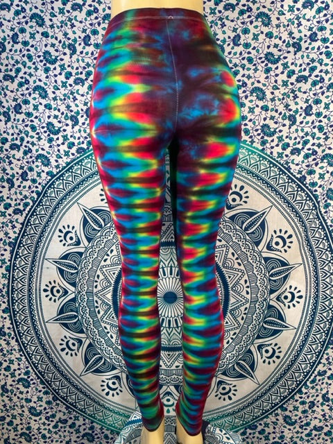 These Magical Leggings are American Made Royal Apparel Leggings (95% cotton/ 5% spandex) are tiedyed by our very own Tie dye Santa aka Tiedye Teddy Bear aka Papa Hadji aka our favorite tiedyer to hug!