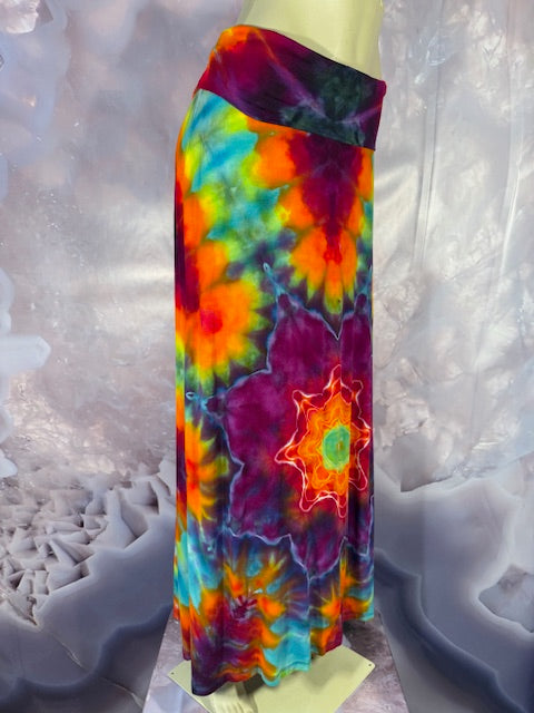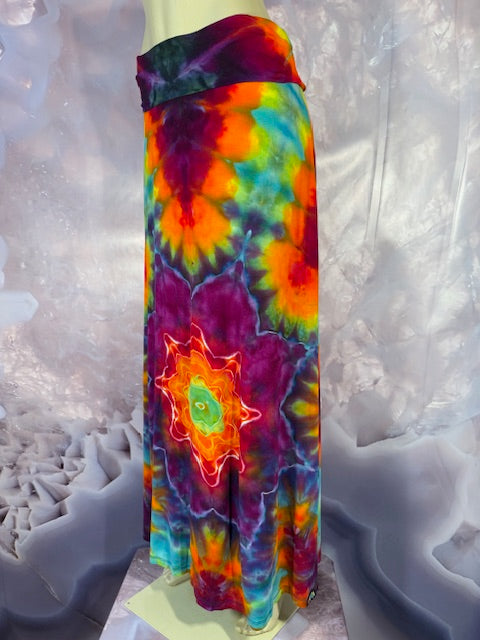 Soft and flowing, feel the wind in the magical rayon/ cotton blend skirt. Cut and Sewn in California and tiedyed by some of our FAV artists, Bobby & Jolene of Hometown Tiedye in Idaho.