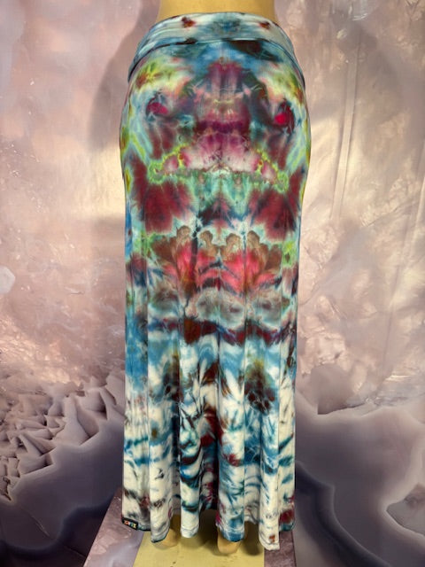 Soft and flowing, feel the wind in the magical cotton - rayon/ cotton blend skirt. Cut and Sewn in California and tiedyed by Misty Morning of San Rafael.